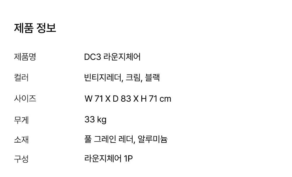 드비저리 프랑스 드비저리 DC3 라운지체어 1인 소파 블랙
