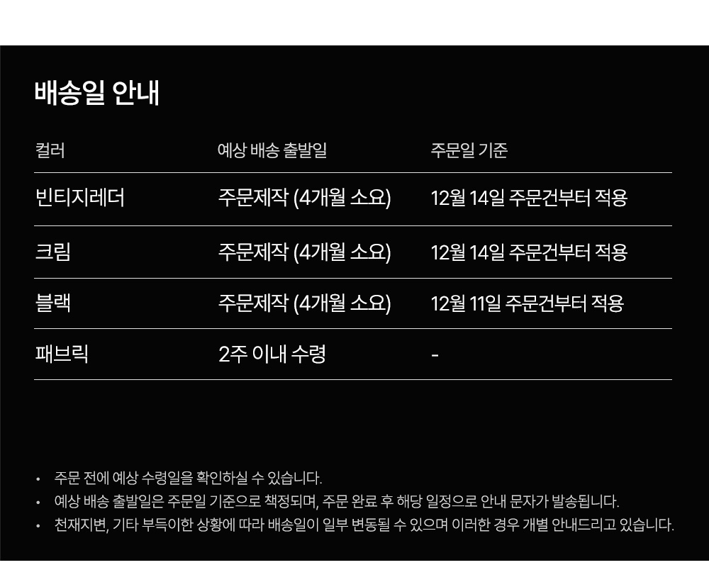 브랜드배송 무료 주문확인 후 90일 내 출고 예정