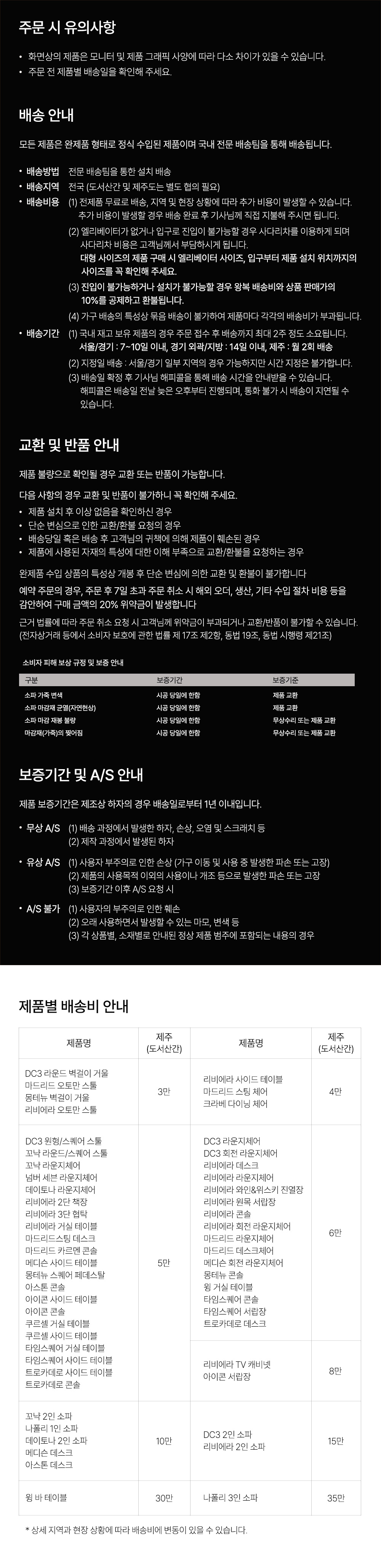 교환 및 반품 안내