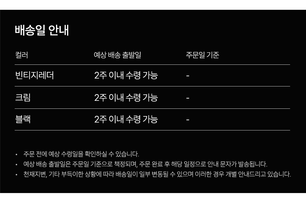 브랜드배송 무료 주문확인 후 90일 내 출고 예정