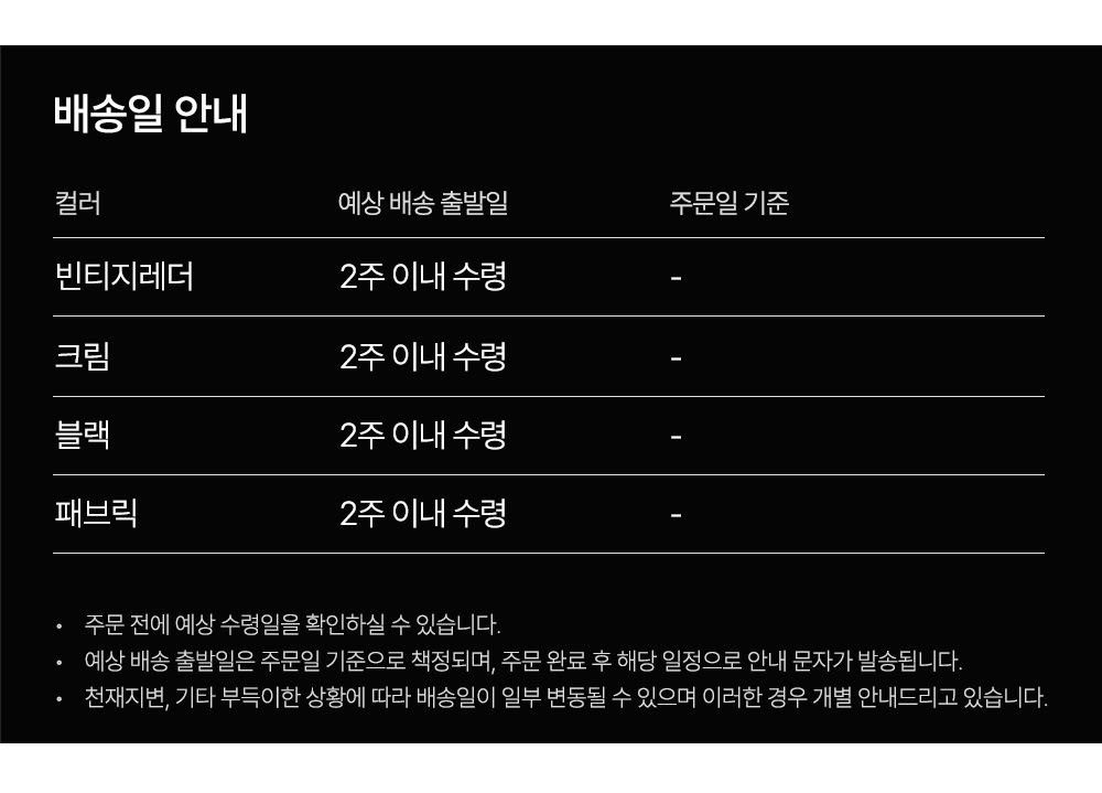 브랜드배송 무료 주문확인 후 90일 내 출고 예정