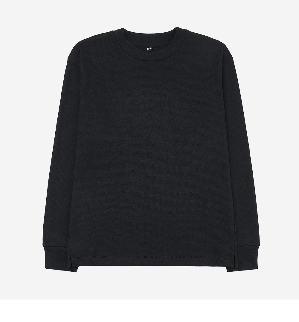 유니클로 소프트 니트 플리스 크루넥 티셔츠 블랙 - JP