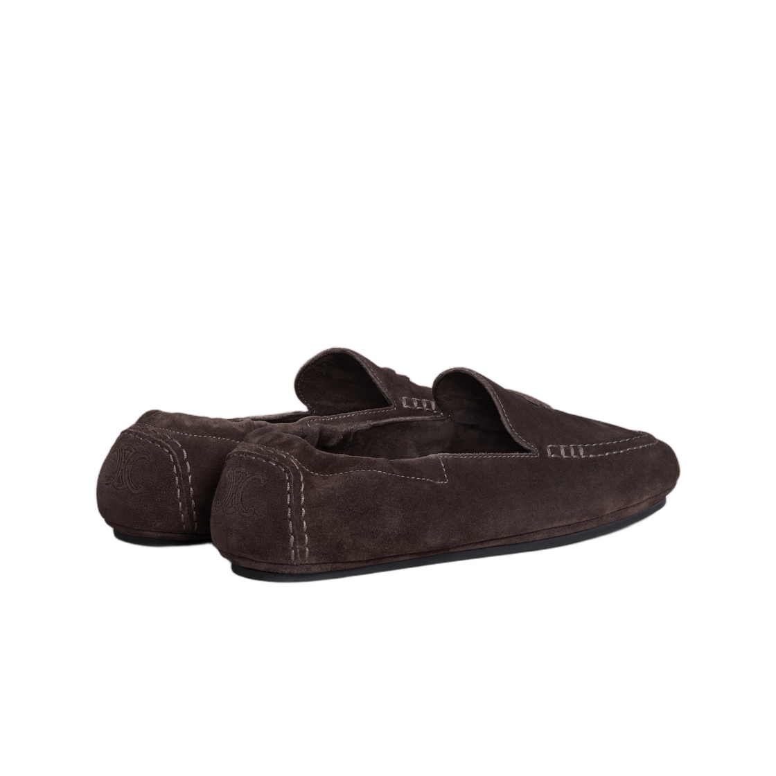 (W) Celine Adam Loafer In Suede Calfskin Dark Brown