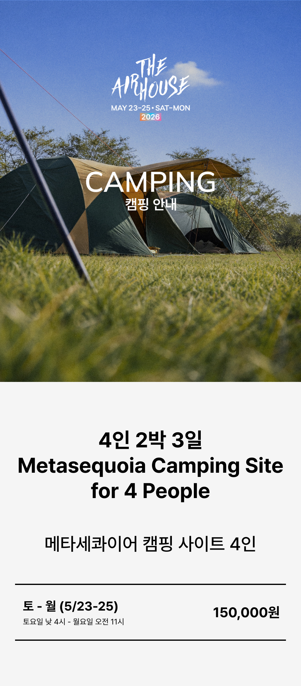 *취사불가 *텐트공통 : 체크인 14:00 체크아웃 16:00 *샤워장운용 : 수영장(워터가든)내 샤워장 이용