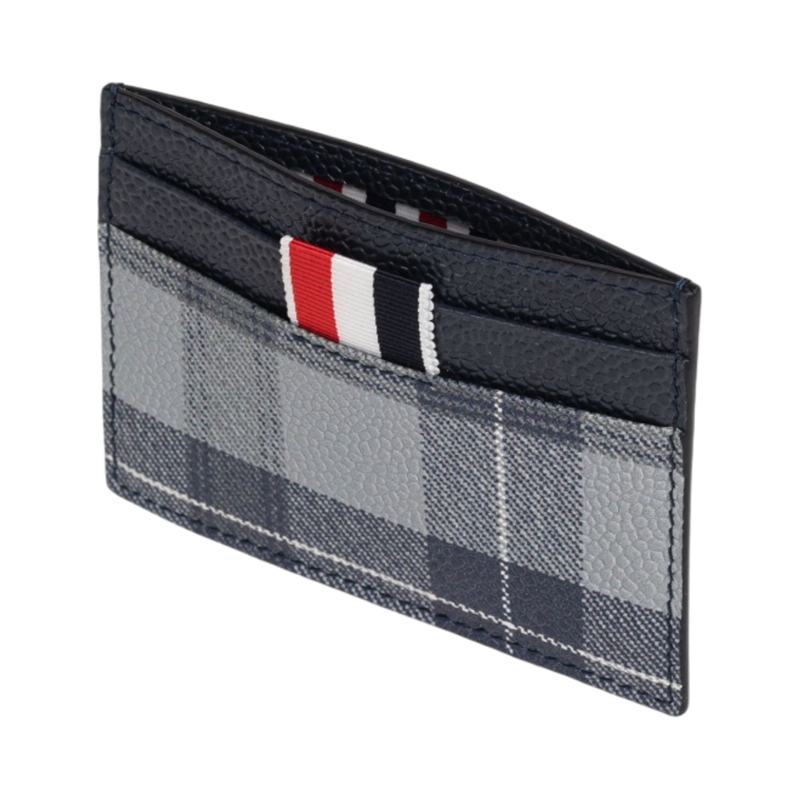 Thom Browne Tartan Pebble Grain Leather Single Card Holder Medium Grey