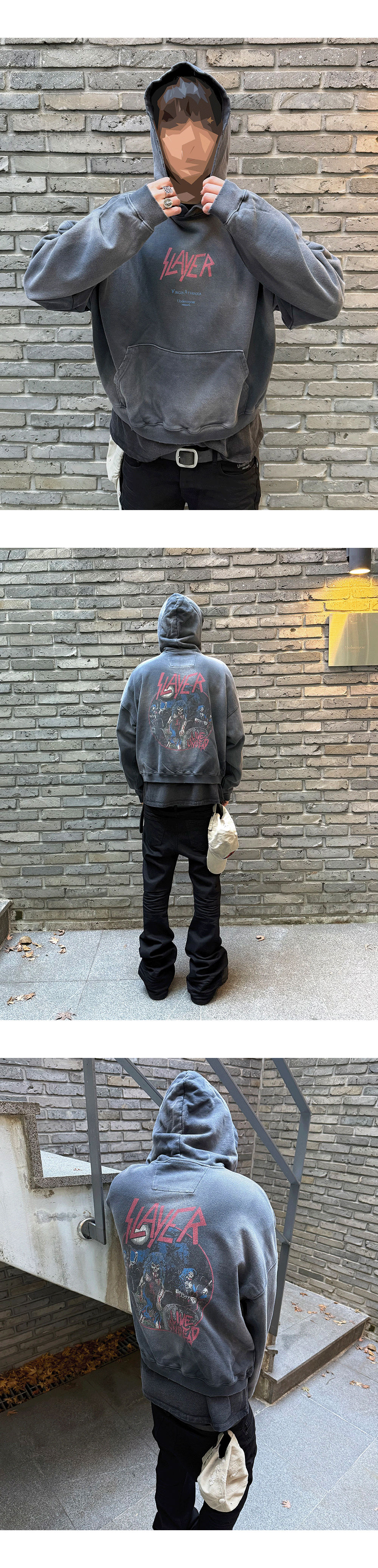 슬레이어 언더마이카 라이브 언데드 빈티지 워시드 후디 네이비