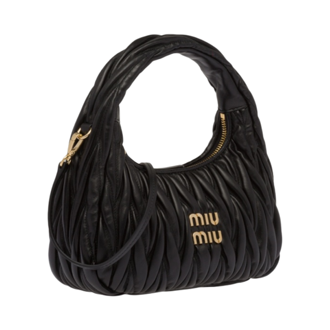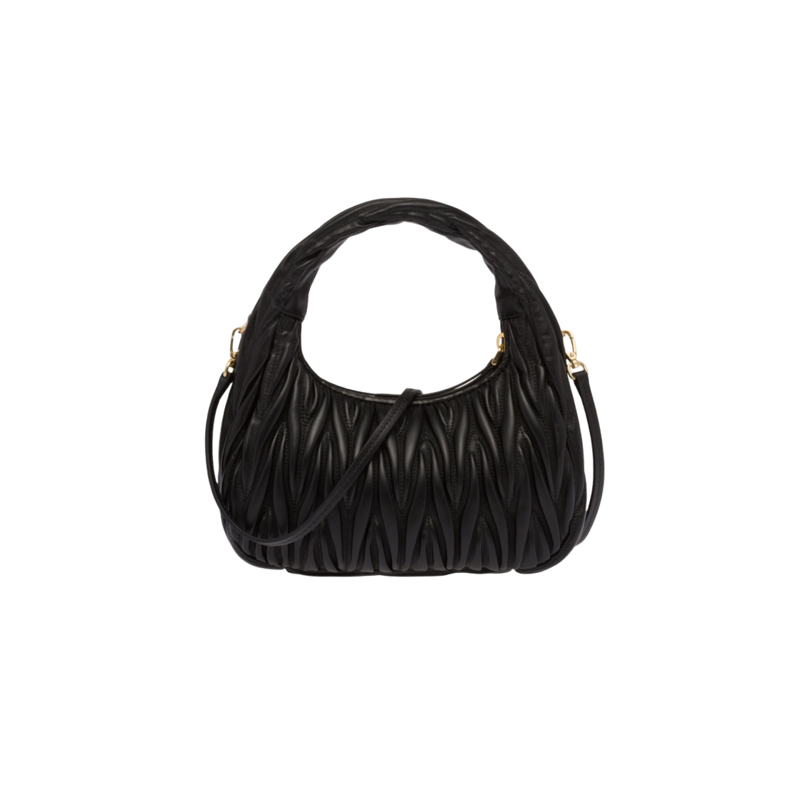Miu Miu Wander Matelasse Nappa Leather Small Hobo Bag Black