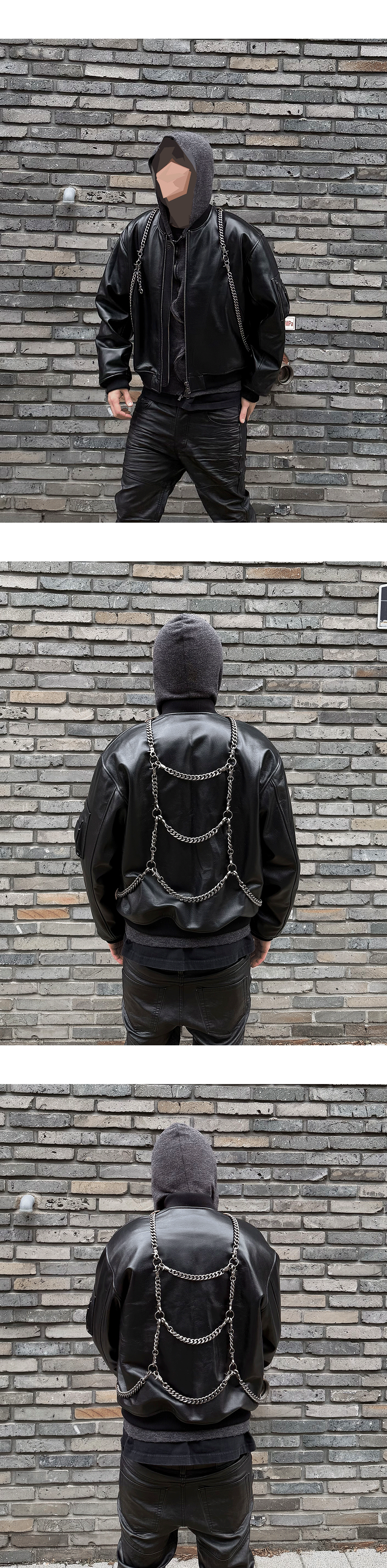 탈부착 가능한 중량감 있는 체인을 두른 가죽 봄버