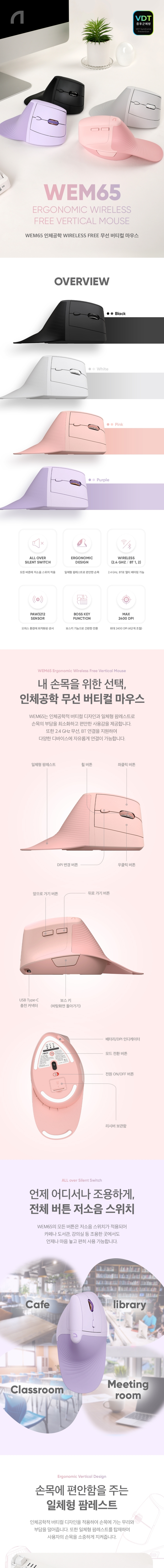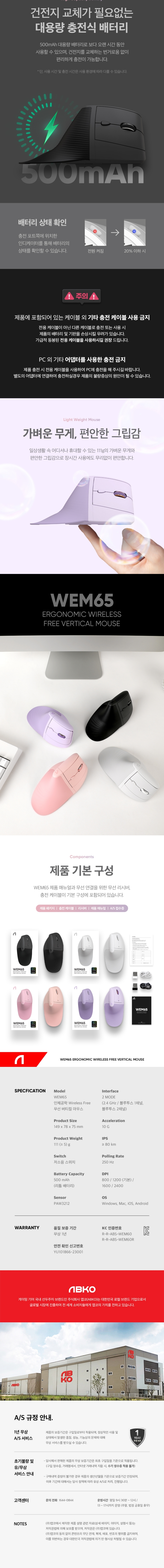 앱코 WEM65 인체공학 WIRELESS FREE 무선 버티컬 마우스