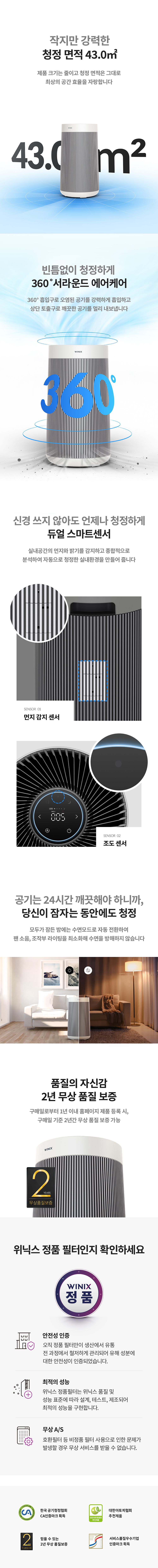 위닉스 공기청정기 타워엣지 실버 AT8E430-MSK 43㎡