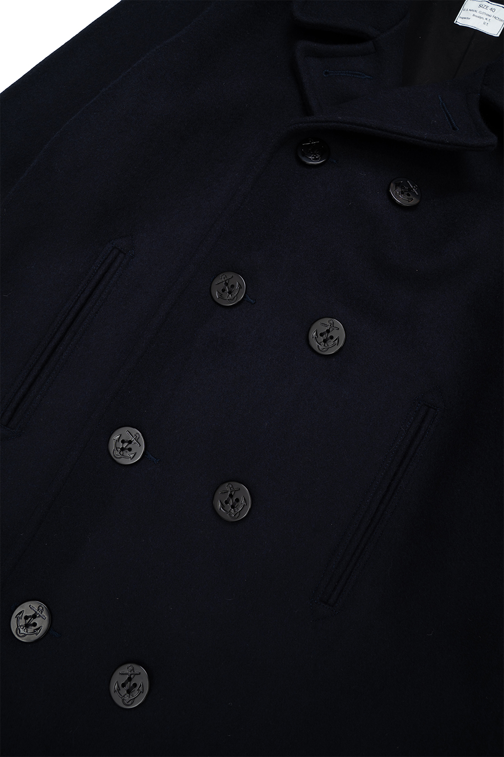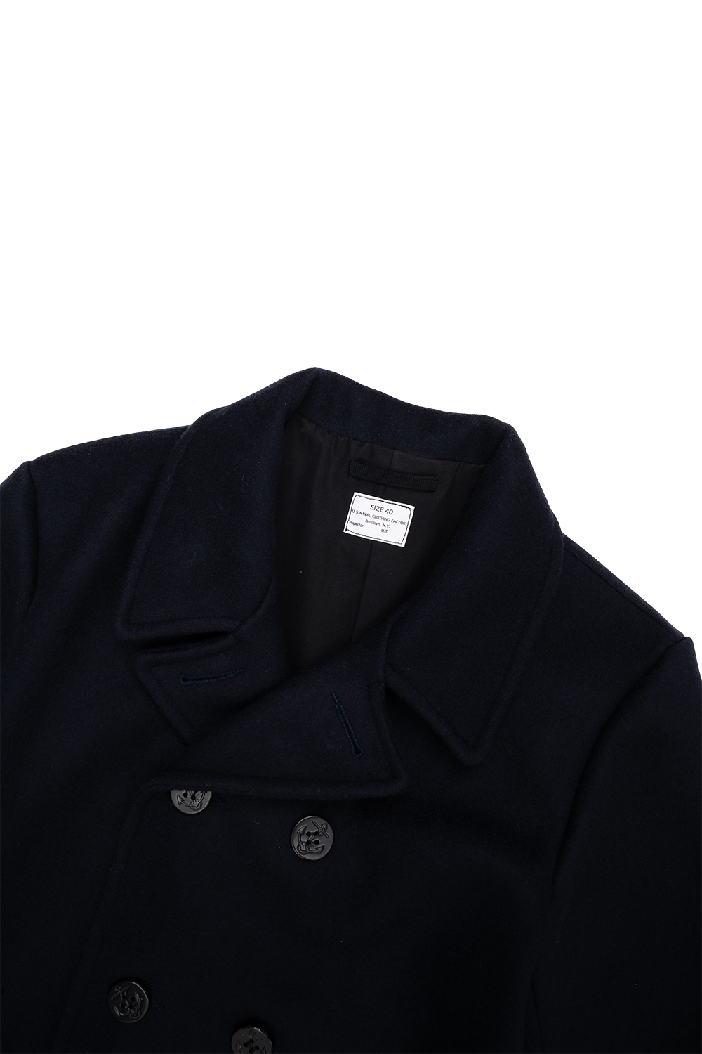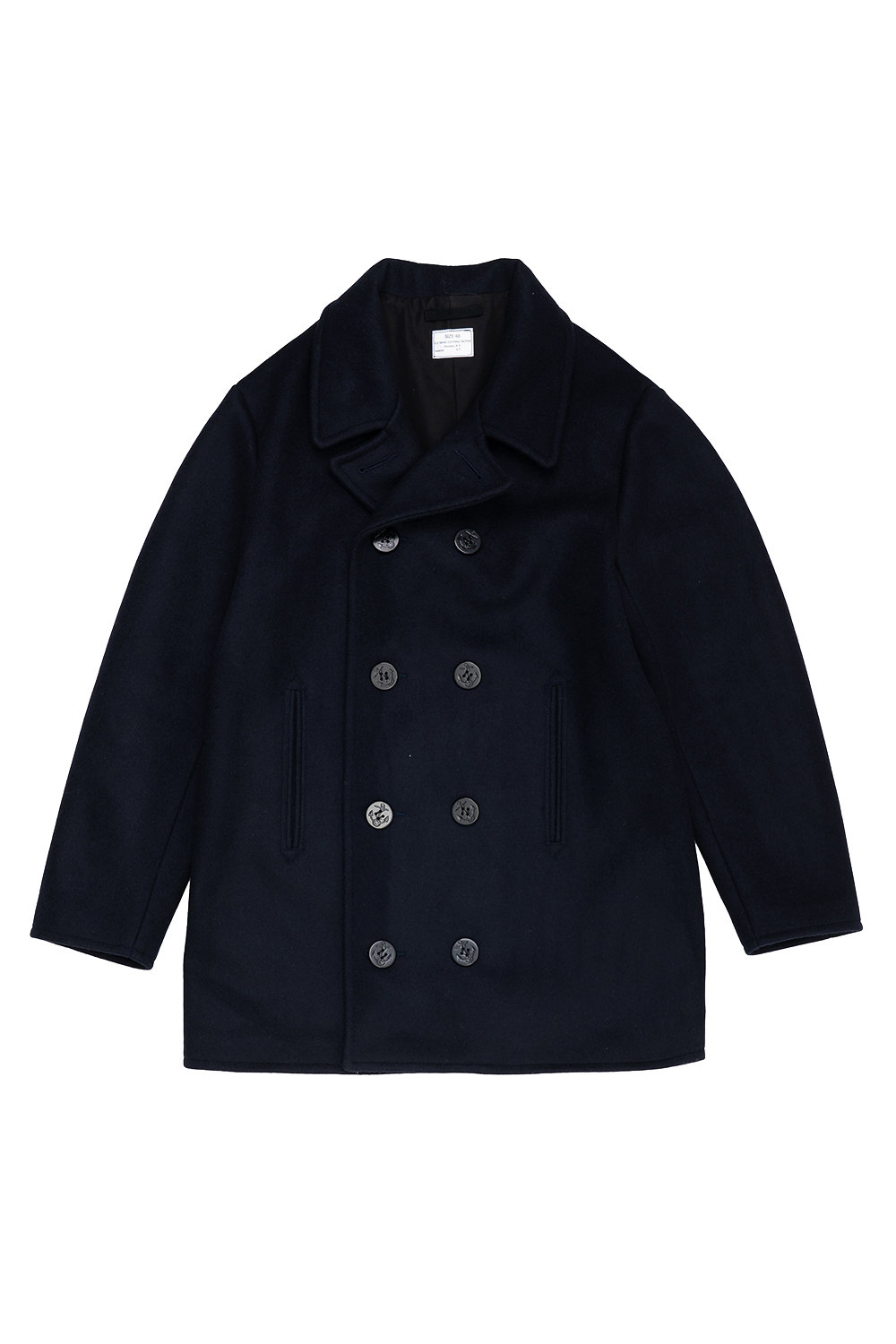 Houston Japan 51194 WWⅡ Pea Coat - Navy 일본산 900G 멜턴 원단을 사용한 USN 타입의 피 코트입니다. 목뒤에는 스트랩이 디자인되어 있어 다양한 스타일을 보여줄 수 있습니다. 전면부에는 앵커 마크가 부착된 큰 버튼이 특징이며, 가슴 원단이 이중으로 된 더블브레스트 사양이 특징적입니다. 양 사이드의 포켓 내부는 베이지 컬러의 코듀로이 원단을 사용했습니다. 안감에는 광택감이 있는 면 트윌 원단을 사용한 것이 특징입니다. * Outer : Wool 90% Nylon 10% * Lining : Cotton 100% * Sleeve Lining : Polyester 100% * 빛에 의한 제품의 색감 차이가 존재 할 수 있습니다. * Made In Japan