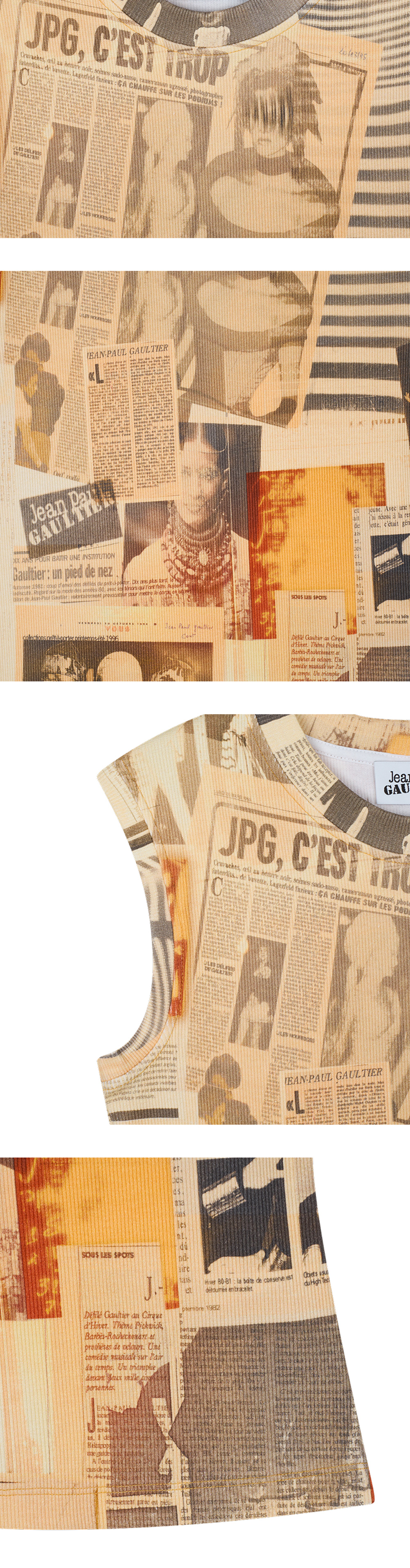 장 폴 고티에 우먼 코튼 리브드 탱크 탑 프린티드 'Journal' 에크루입니다. - 고티에의 정체성이 담긴 "Journal" 그래픽 - 2000년대 초반의 아카이브를 현대적으로 복각한 상징적인 디자인 - 신축성이 뛰어난 코튼 리브 소재를 사용하여 편안하면서도 슬림한 핏