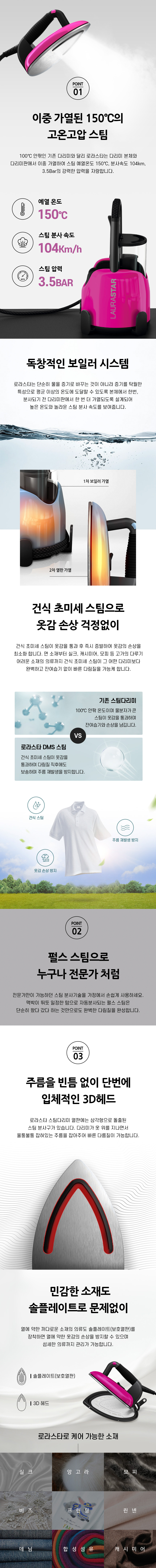 로라스타 스팀 다리미 LIFT Plus 핑크