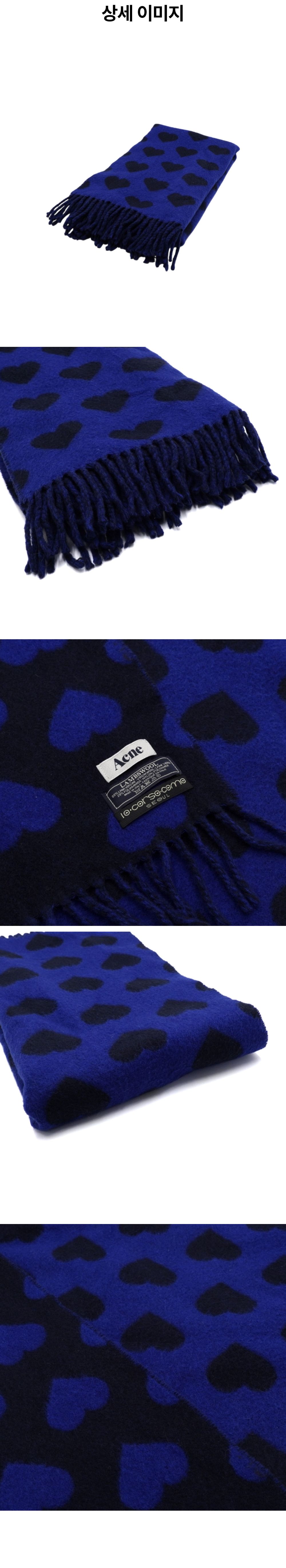 아크네 울 혼방 블랙 앤 블루 하트 패턴 여성 스카프 머플러aa59629