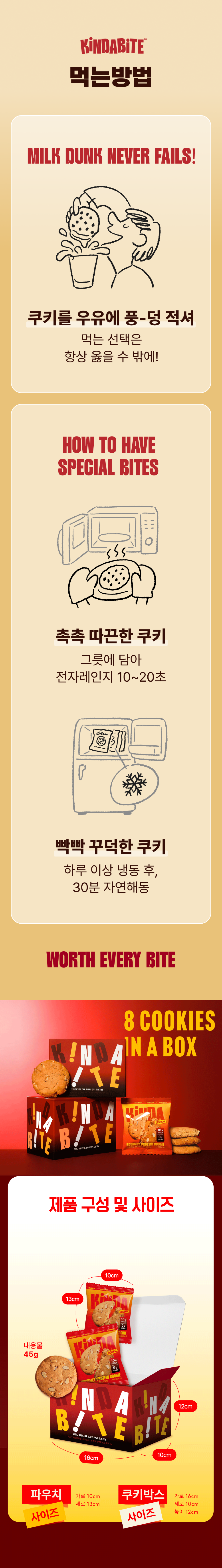 추운 날씨로 인해 쿠키 속 버터 성분이 얼어 다소 단단하게 느껴질 수 있습니다. 드시기 전 에어프라이어 또는 오븐에 1~2분 데워 드시면 더욱 부드럽고 맛있게 즐기실 수 있습니다.