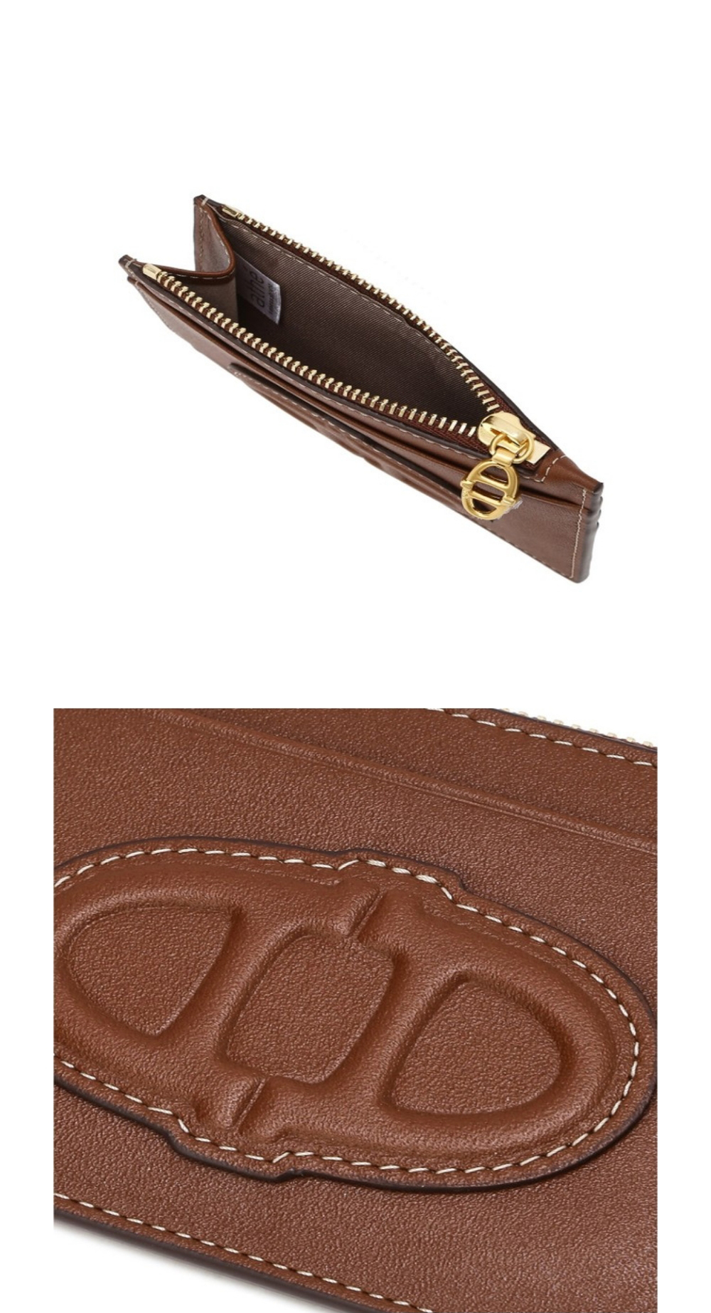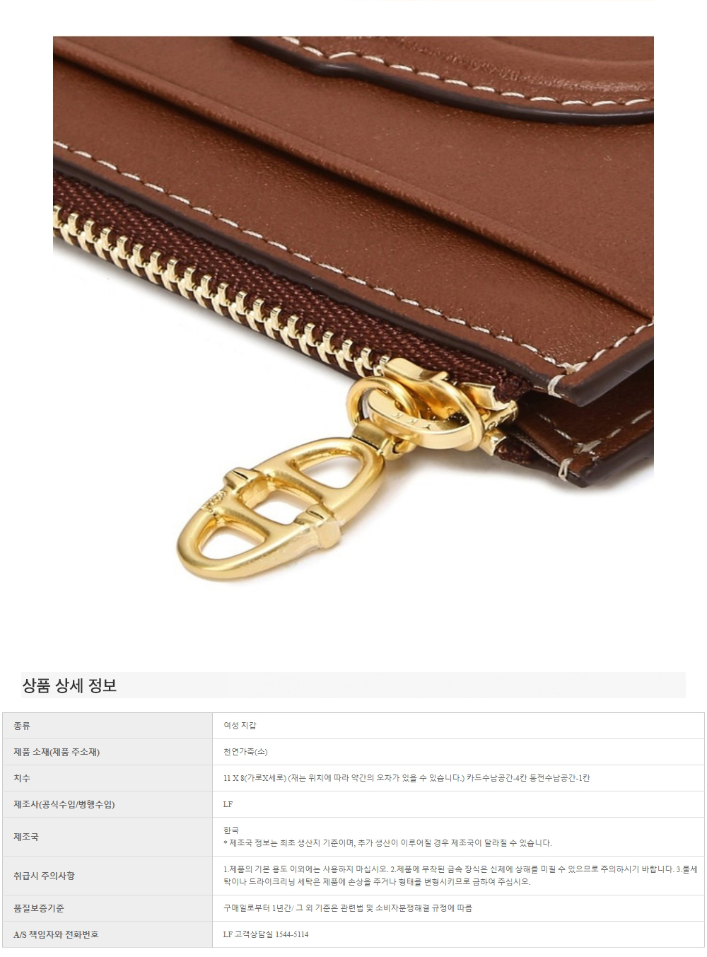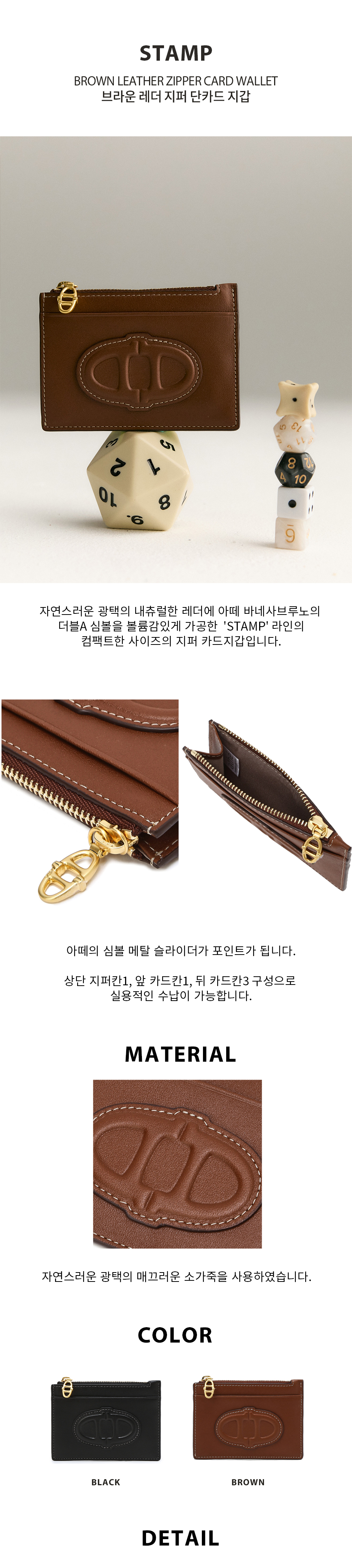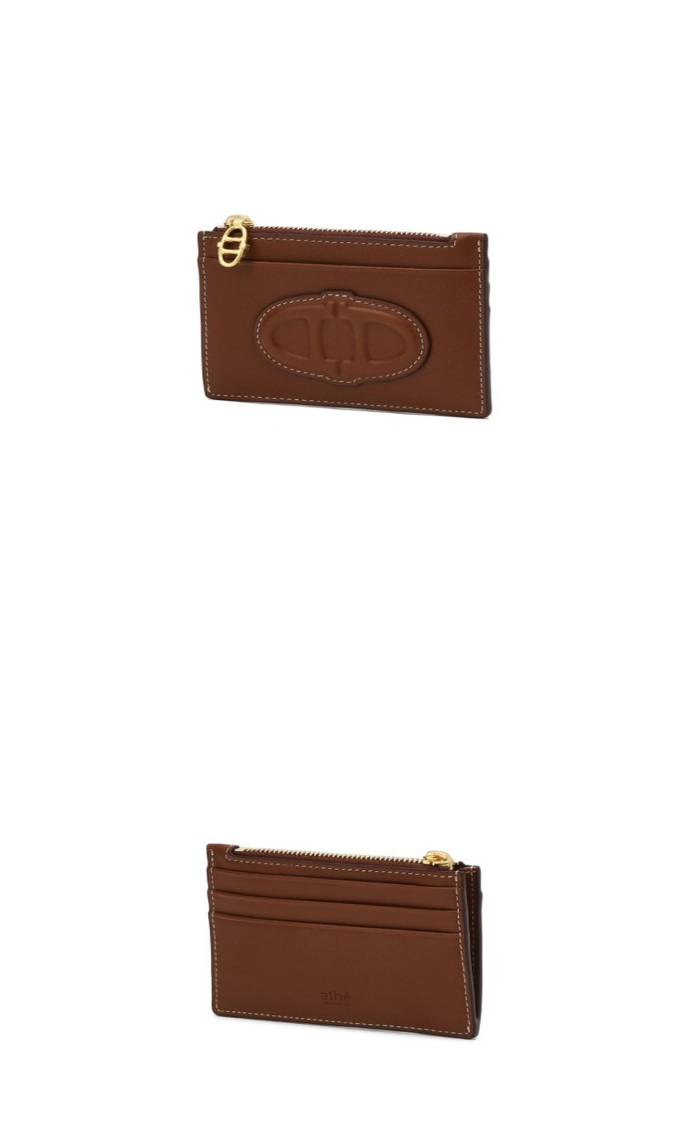 아떼 바네사브루노 액세사리 스탬프 브라운 레더 지퍼 단카드지갑 브라운