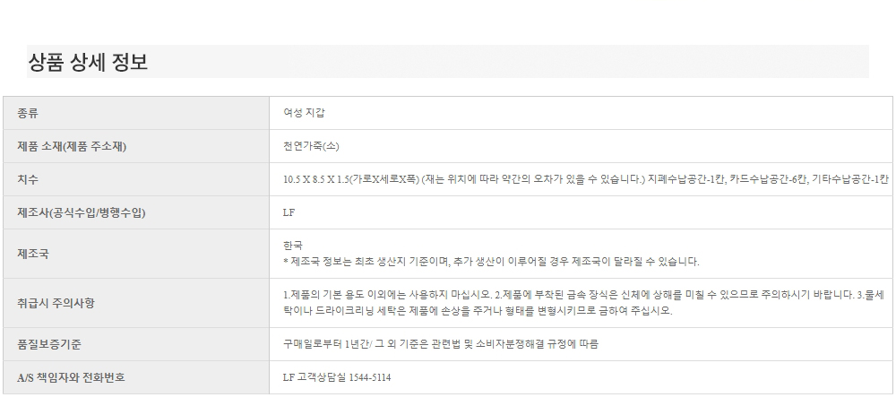 상품정보제공 고시