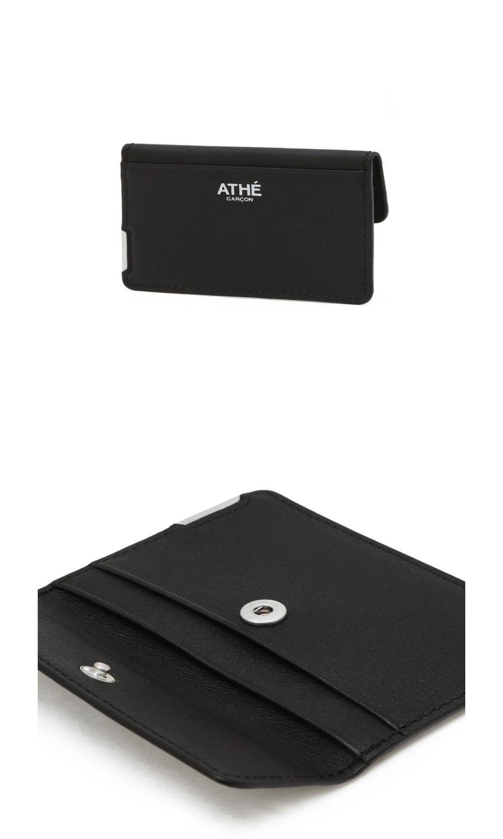 아떼 바네사브루노 액세사리 가르송 블랙 실버 바 플랩 단카드 지갑 블랙