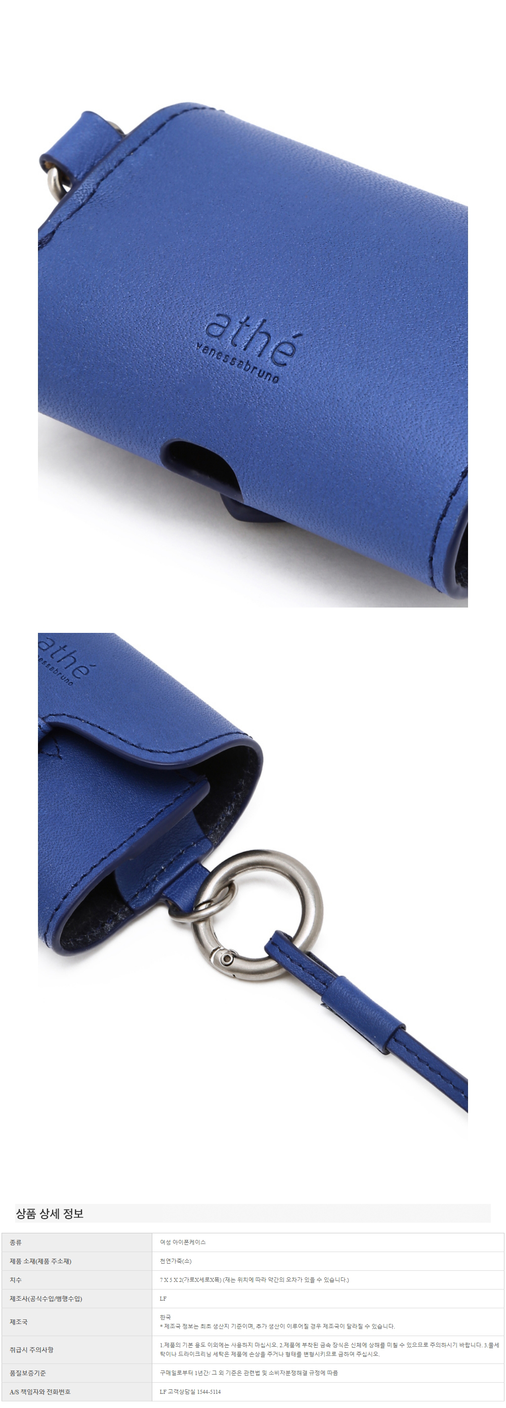 아떼 바네사브루노 액세사리 셀르 블루 레더 에어팟케이스 블루