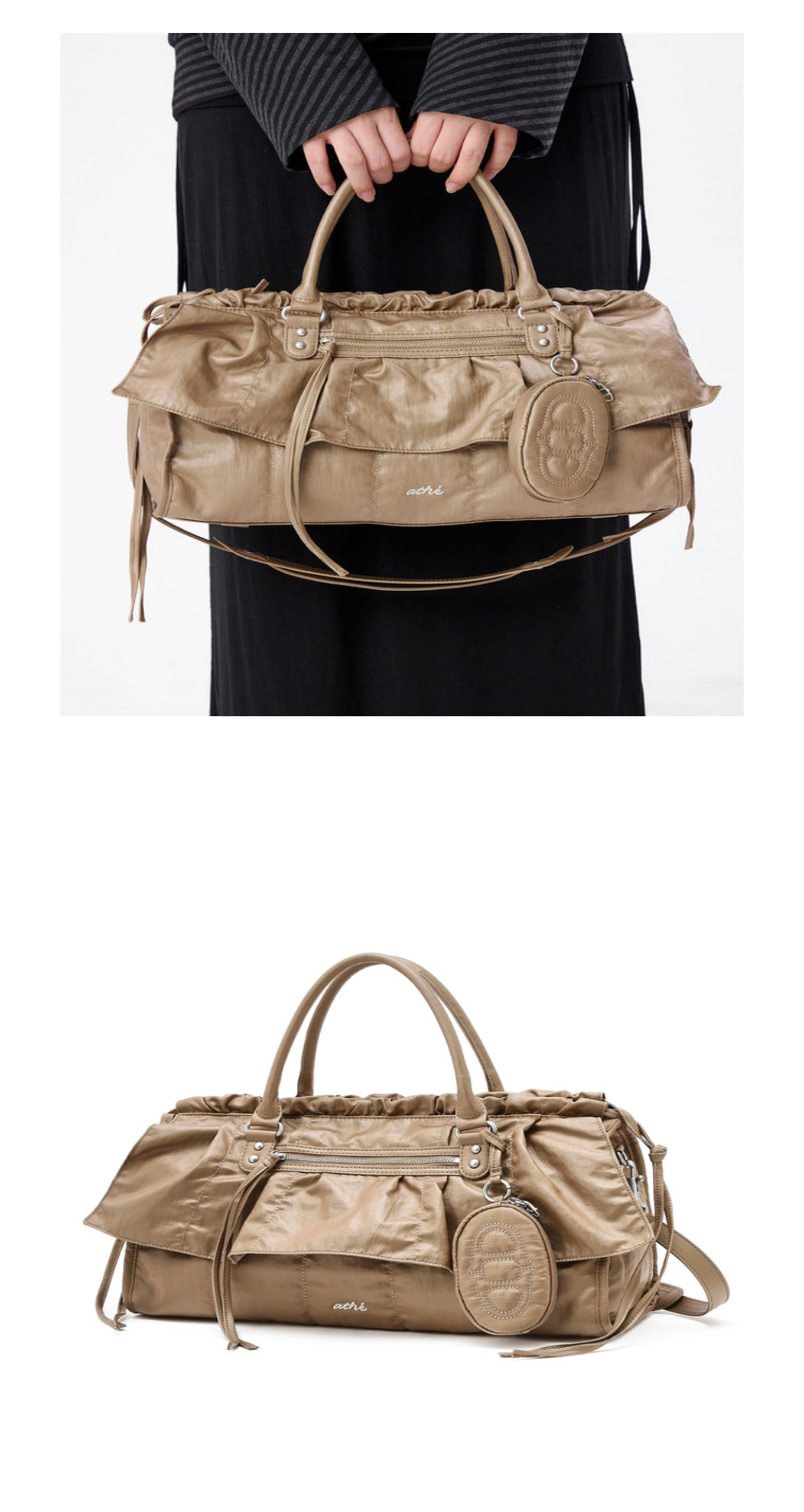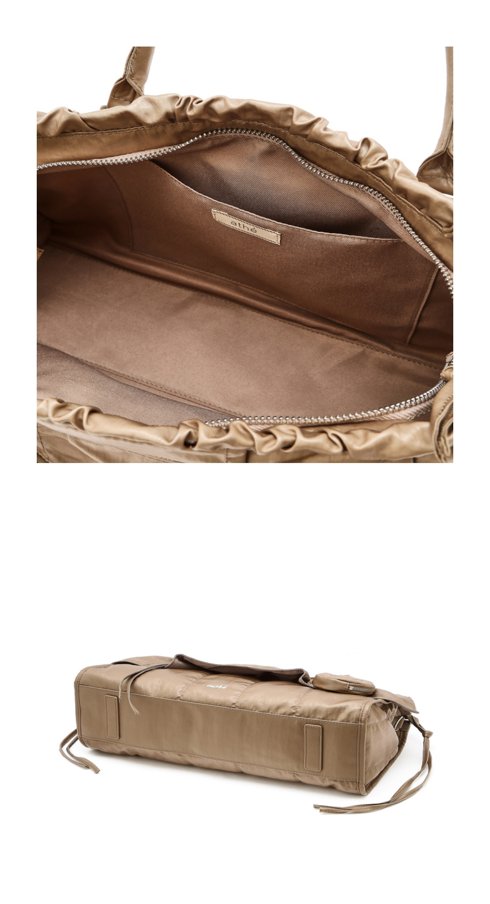 아떼 바네사브루노 액세사리 프릴 베이지 듀프스킨 토트백 M 라이트 브라운