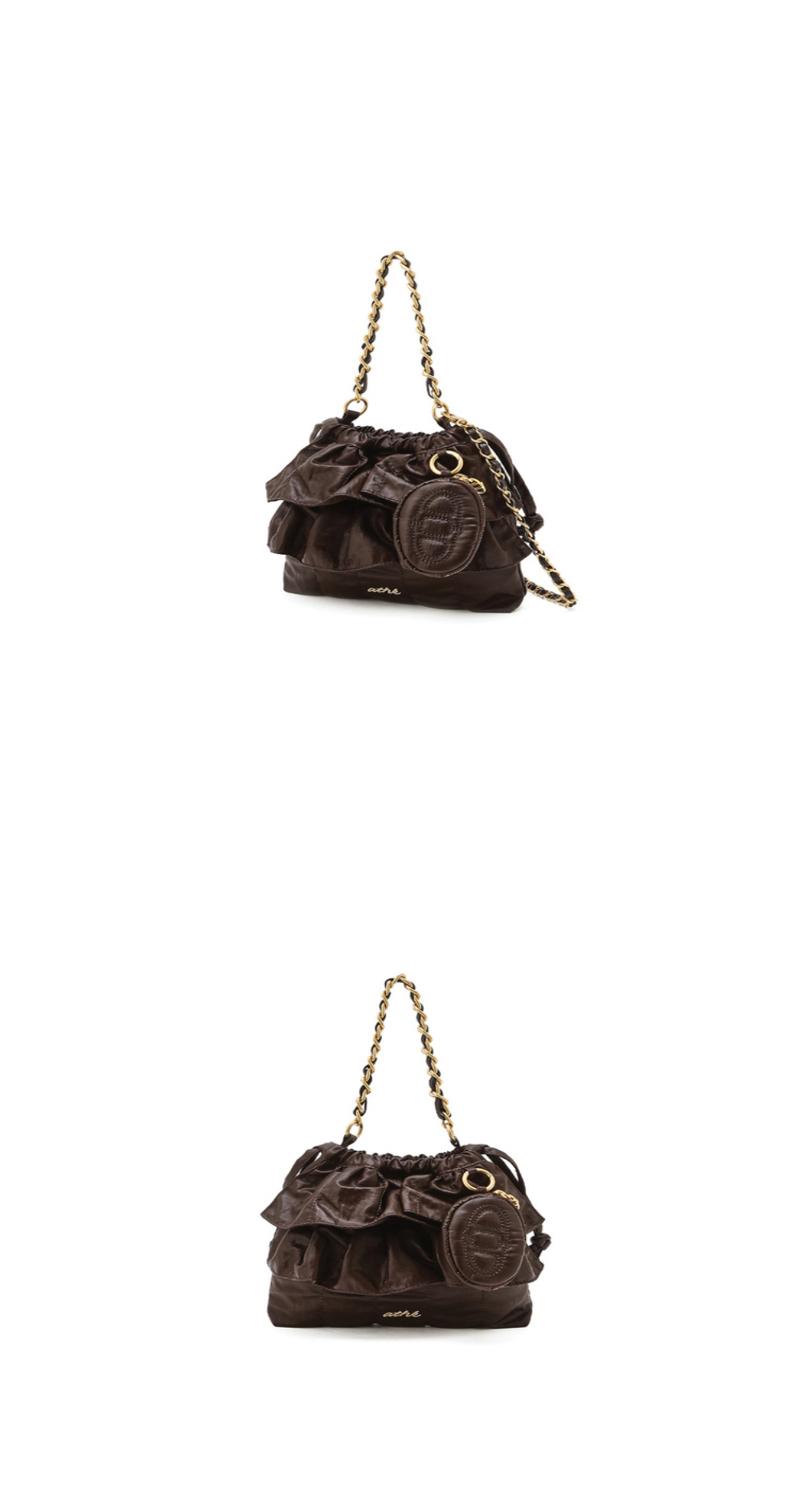 아떼 바네사브루노 액세사리 프릴 브라운 듀프스킨 미니크로스 S 브라운