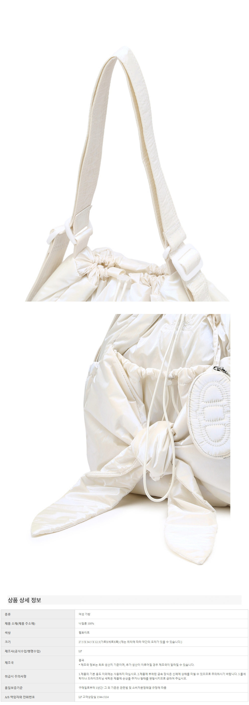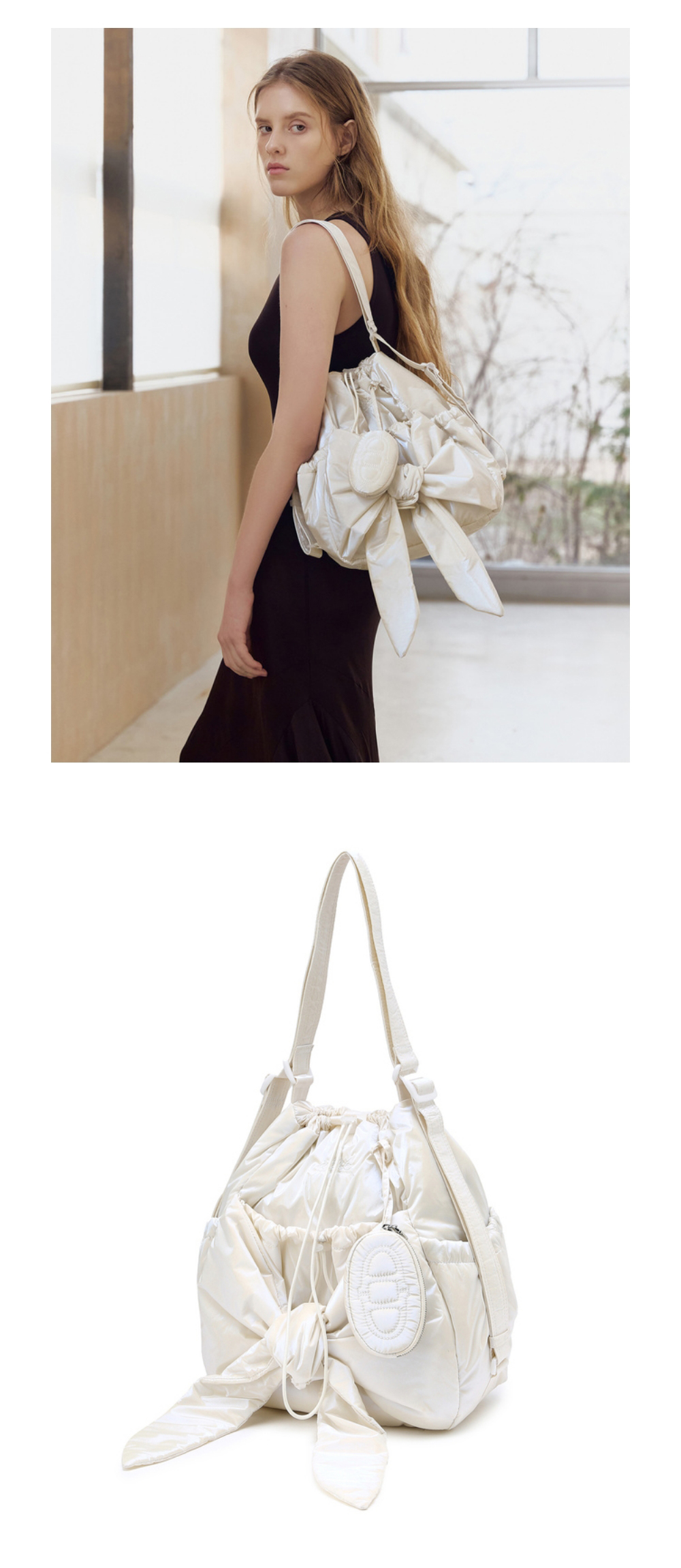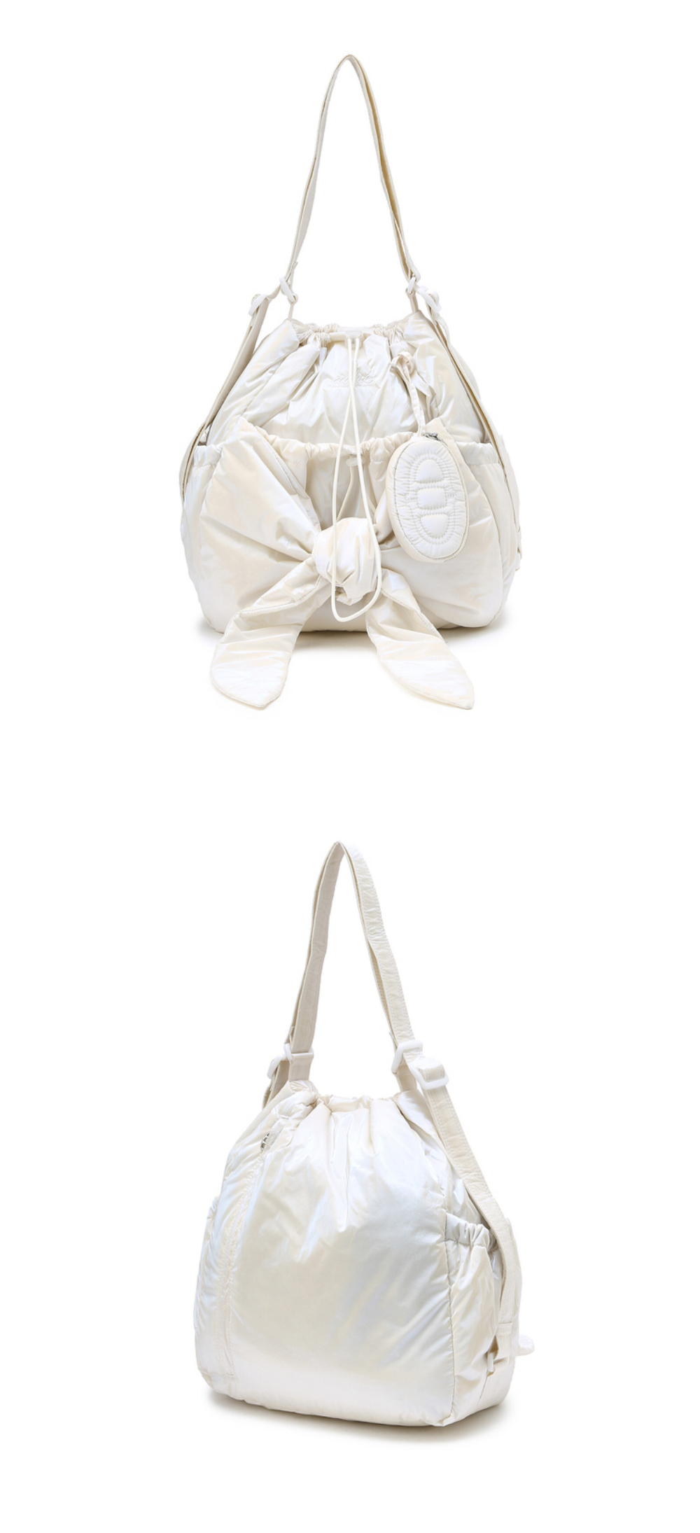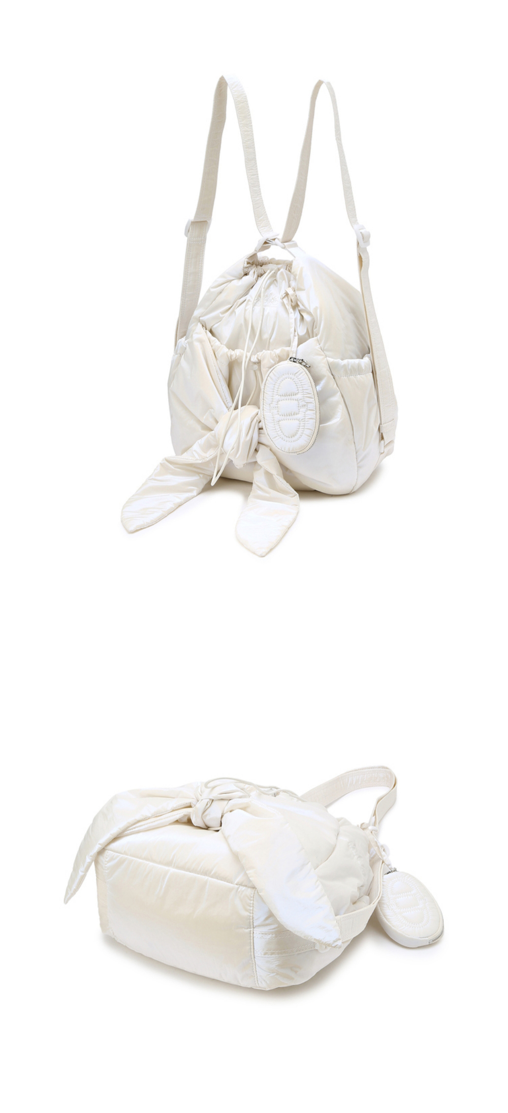아떼 바네사브루노 액세사리 르봉 글로시 펄화이트 리본 백팩 겸 숄더백 S 오프화이트