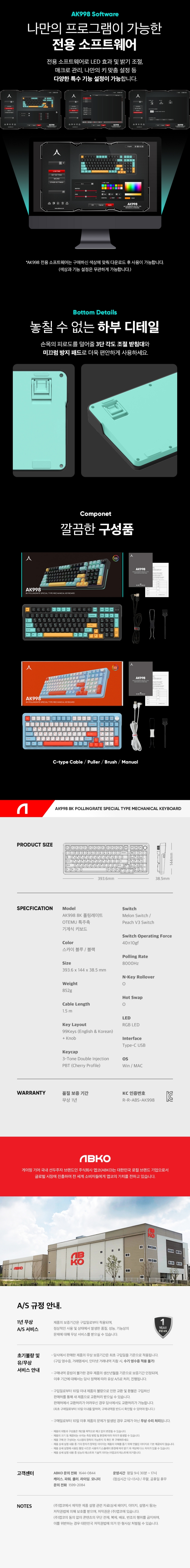 앱코 AK998 8K OTEMU 특주축 기계식 키보드 스카이 블루 저소음 피치축