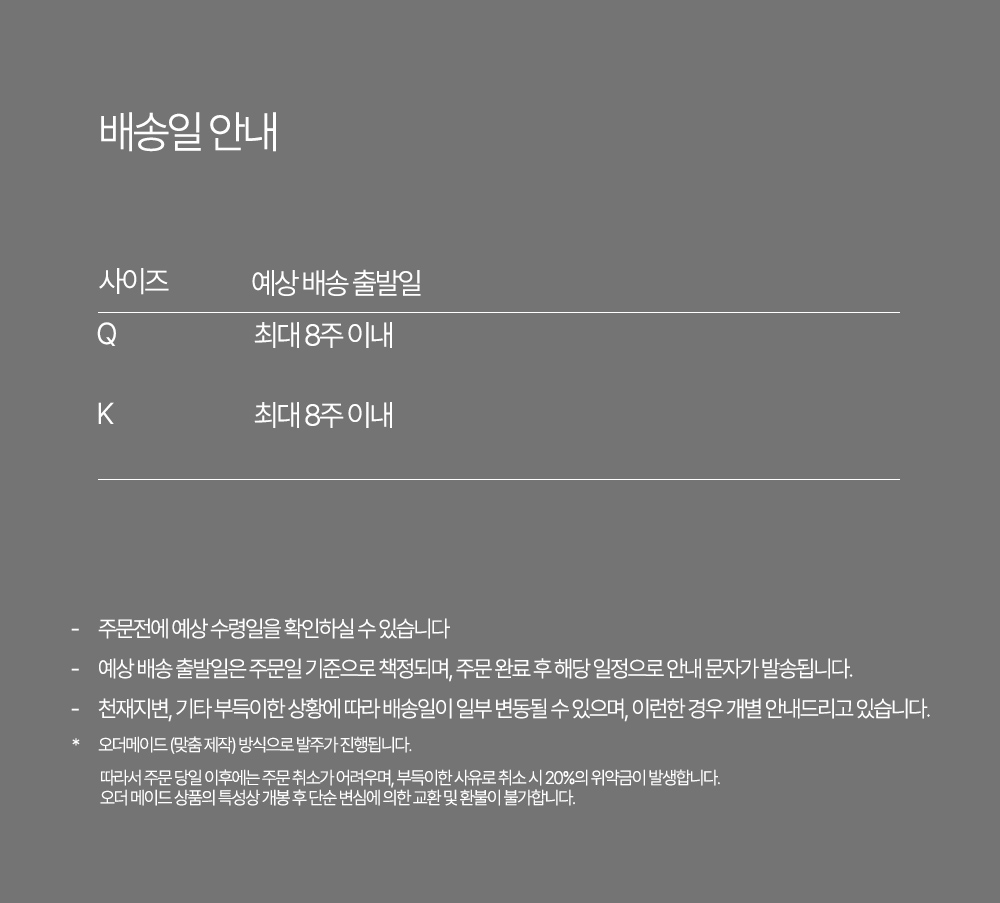 브랜드배송 무료 주문확인 후 90일 내 출고 예정