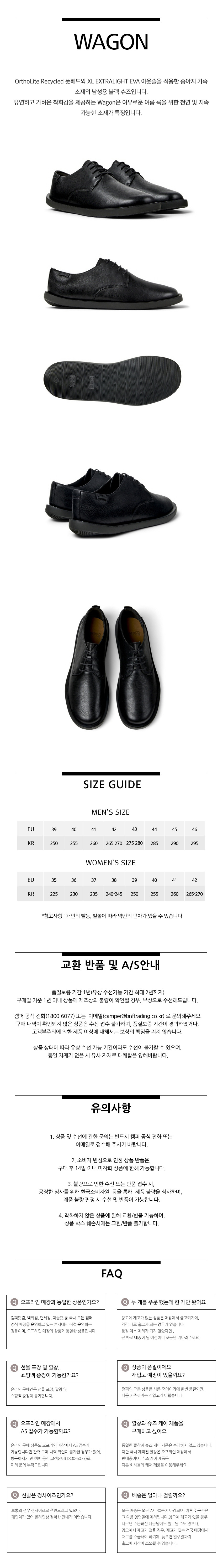 캠퍼 남성 와곤 정장화 블랙