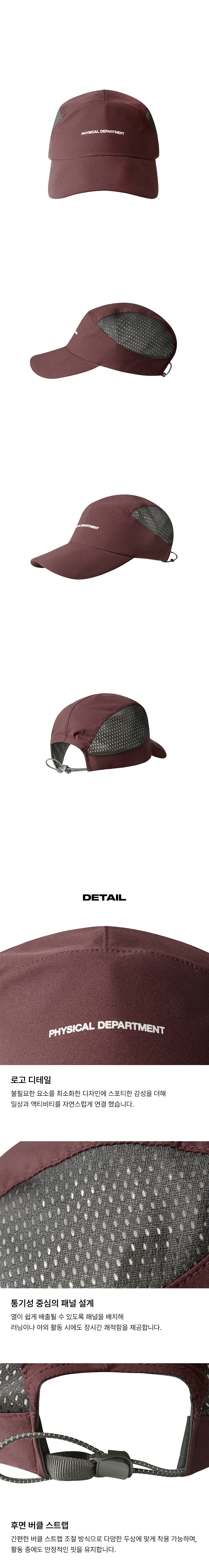피지컬 디파트먼트 메쉬 컬러블럭 라인 캡 버건디
