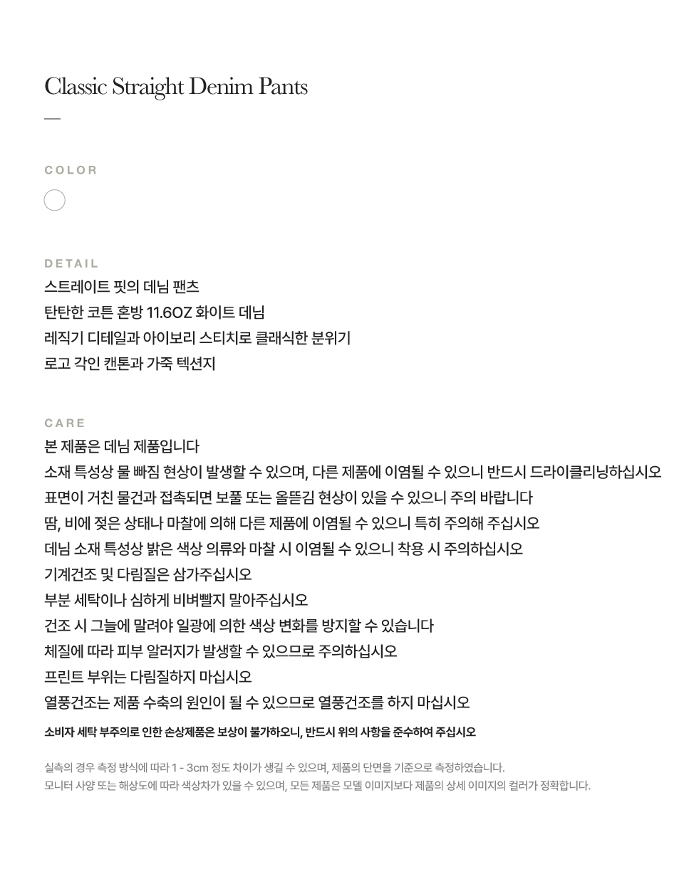 [사은품 증정] 세터 우먼 클래식 스트레이트 데님 팬츠 화이트