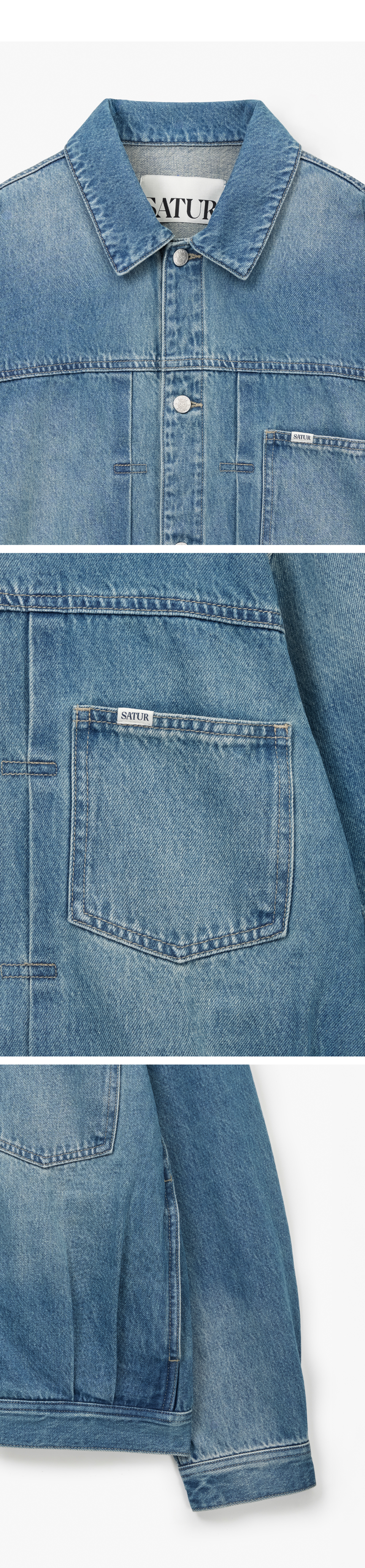 [사은품 증정] SATUR Pleated Washed Denim Trucker Jacket Blue