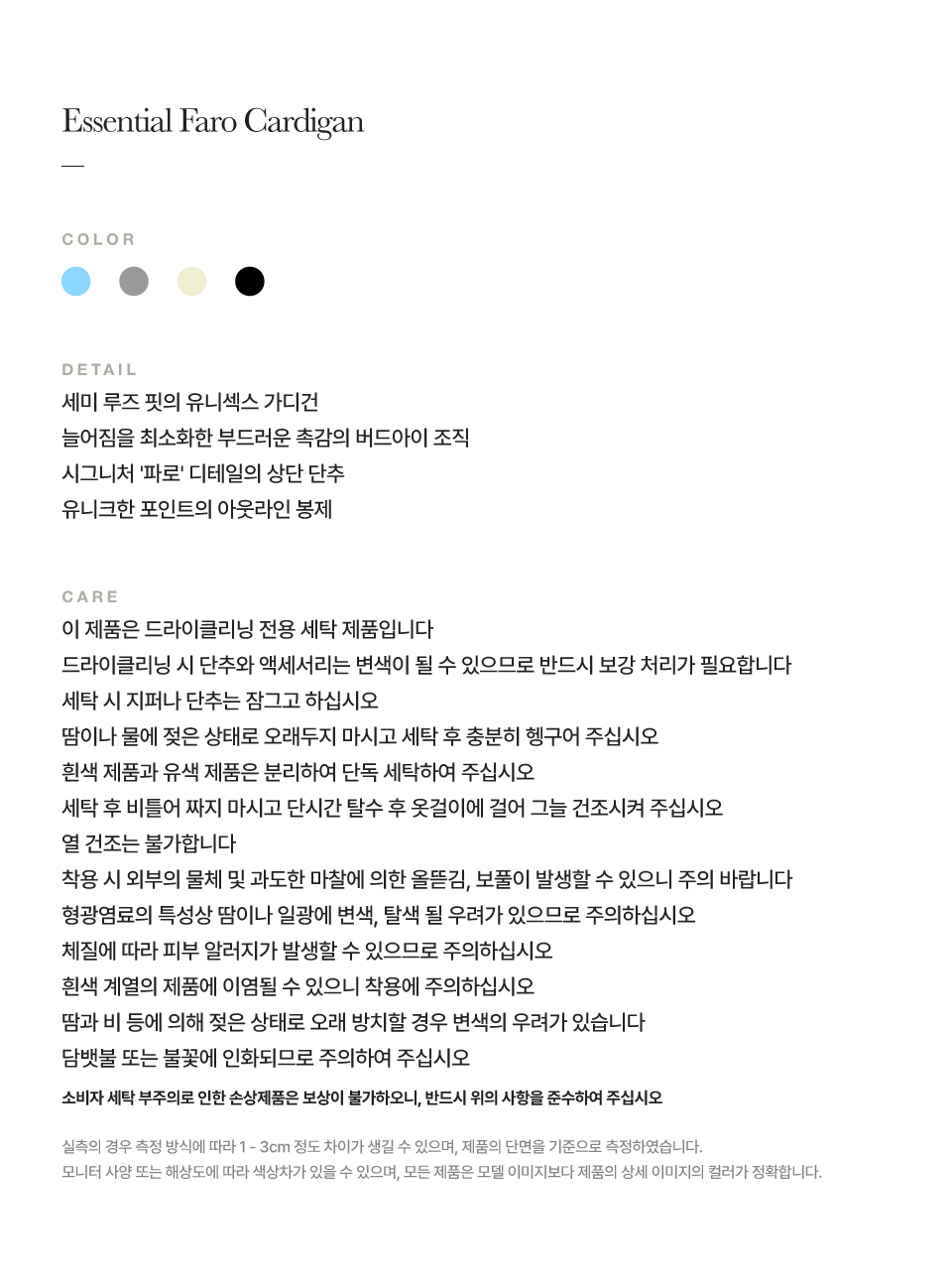 측정 방법에 따라 사이즈에 일부 오차가 있을 수 있습니다.