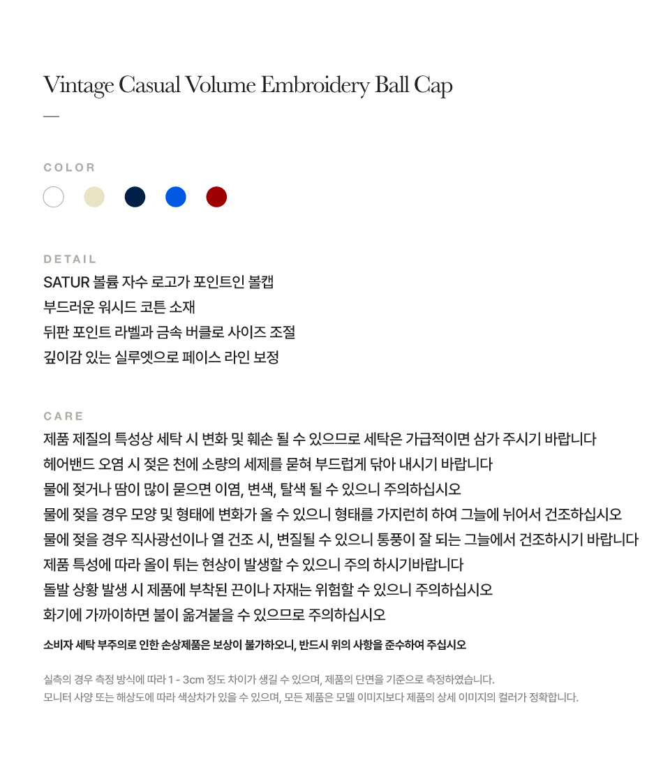 세터 빈티지 캐쥬얼 볼륨 자수 볼캡 네이비