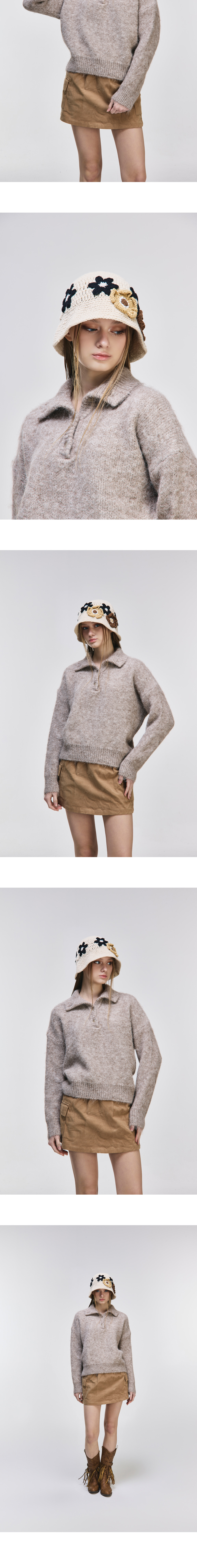 THE GREATEST Blossom Knit Bucket Hat Beige