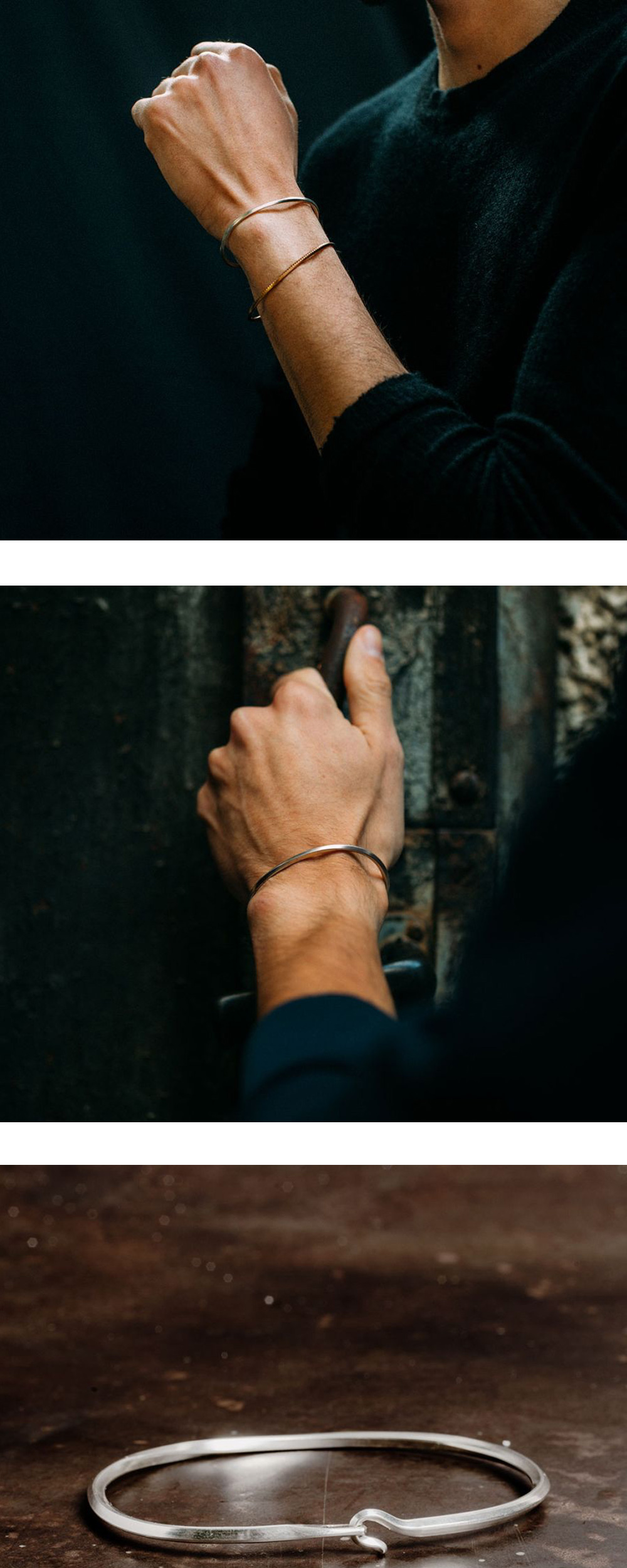 베르크슈타트 뮌헨 뱅글 사이드 후크 트위스트 실버입니다. - 팔찌의 측면 고리는 하나의 은 조각으로 통째로 제작 - 각 팔찌는 직사각형 은 단면을 구부리면서 비틀어 만드는 수작업 과정을 거쳐 완성 - 옆으로 휘어진 고리는 팔찌의 핵심적인 구성 요소이자 잠금 장치 역할을 동시에 수행