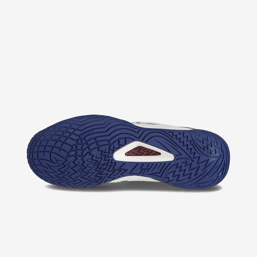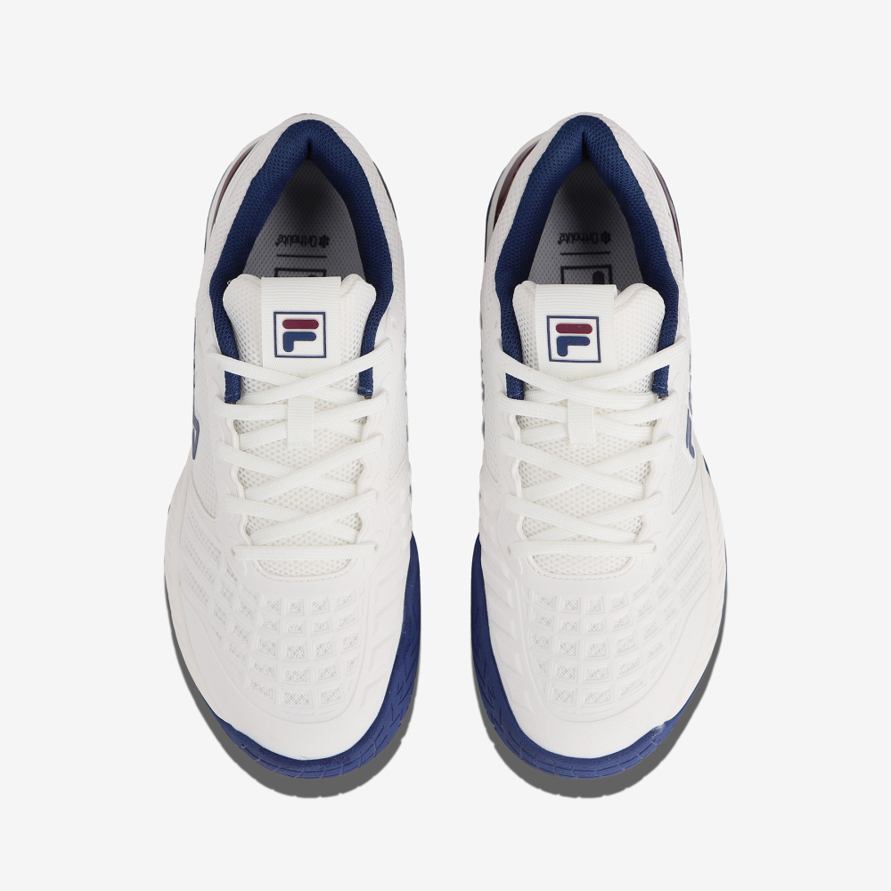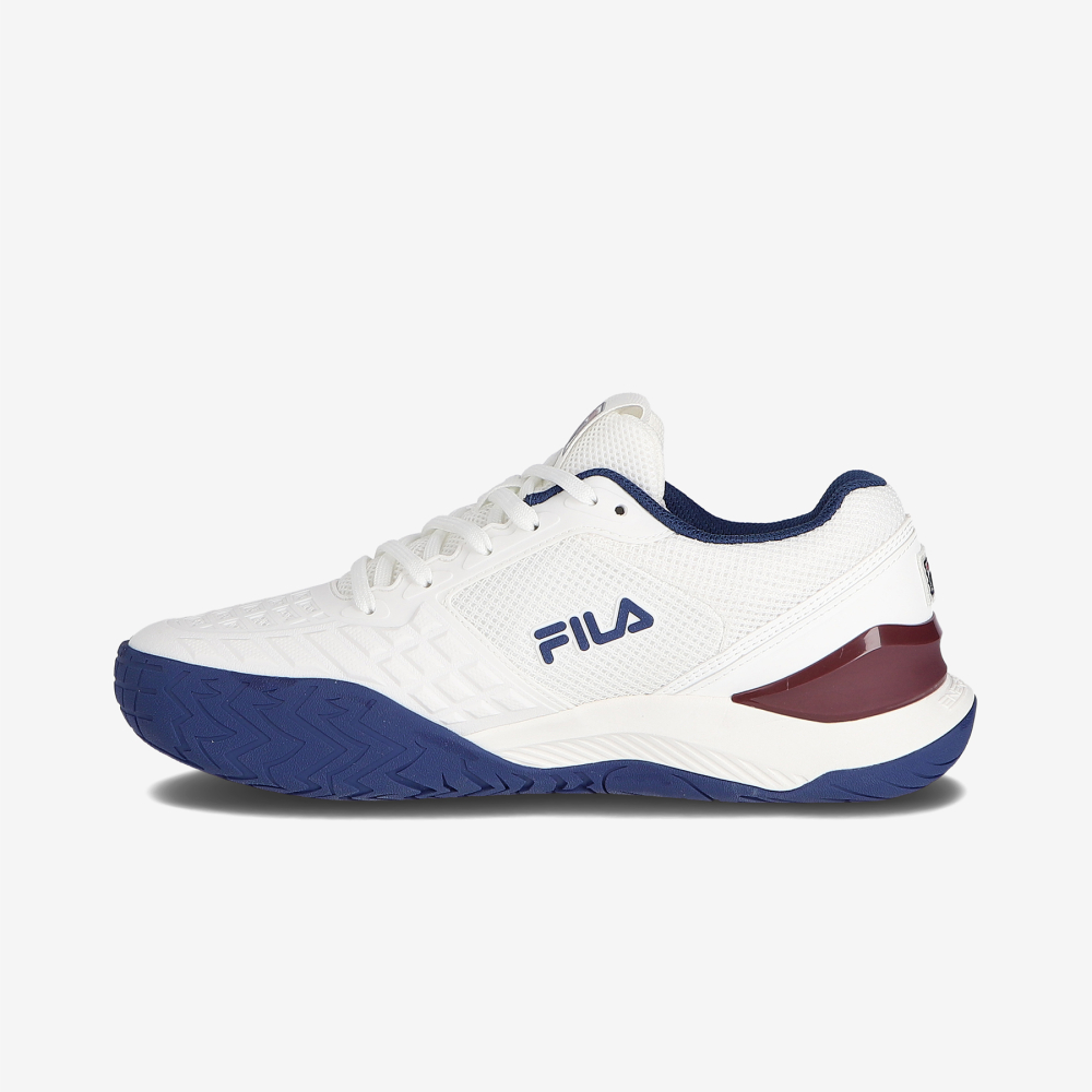 FILA 퍼포먼스 테니스 T9 라인의 Axilus 3입니다.가장 스탠다드한 스펙을 기반으로 다양한 플레이 스타일에 적합하며, 누구나 편안하게 느낄 수 있는 안정적인 착화감을 제공합니다.격렬한 마찰이 발생하는 갑피에는 PU공법 소재를 적용해 안정성과 유연성을 동시에 확보했습니다.엄지발가락 부분까지 확장된 러버 디테일은 강력한 접지력은 물론, 플레이 중 부상으로부터 발을 보호하는 우수한 안정성을 제공합니다.또한 Ortholite 인솔을 적용하여 발바닥의 쿠션감을 한층 강화했으며, 테니스 종목의 특성에 맞춰 지면 접촉 시 발생하는 발의 비틀림을 효과적으로 방지하는 아웃솔 구조로 설계되었습니다.
