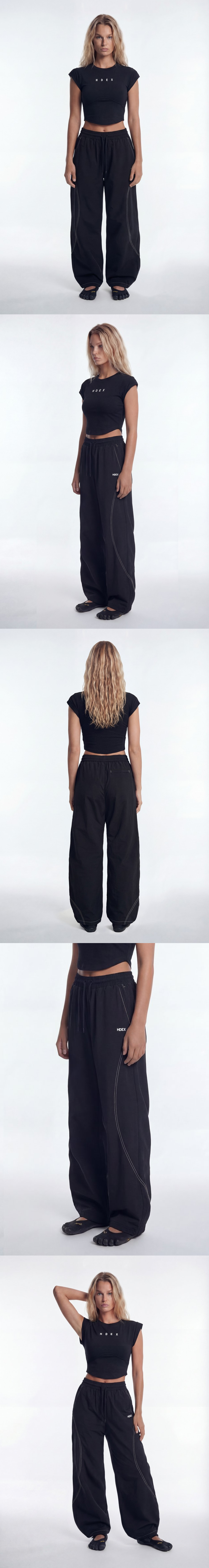 에이치덱스 스티치 커브드 나일론 스판 팬츠 우먼 블랙