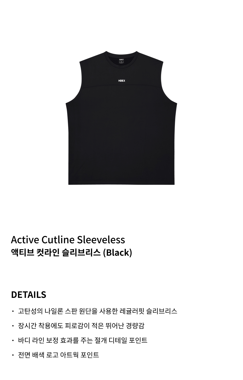 에이치덱스 액티브 컷라인 슬리브리스 블랙