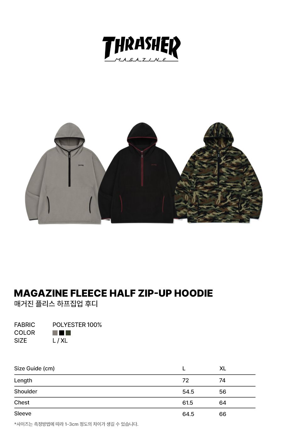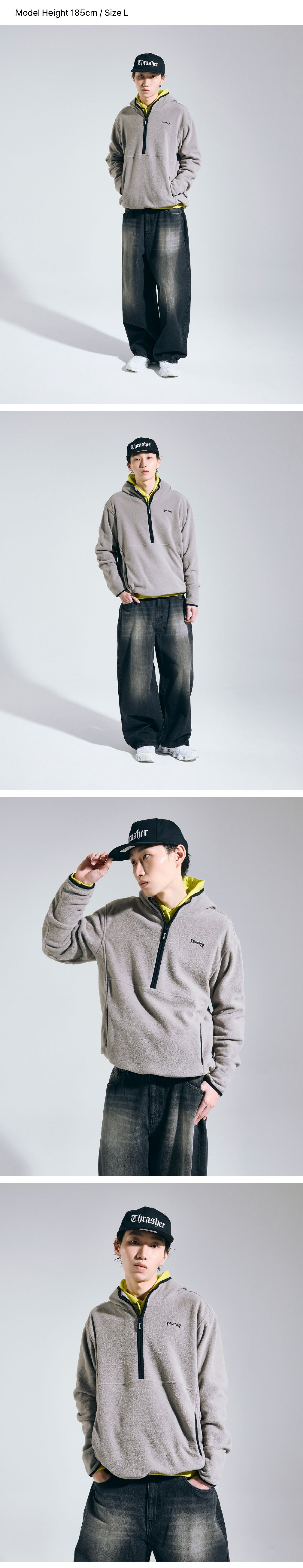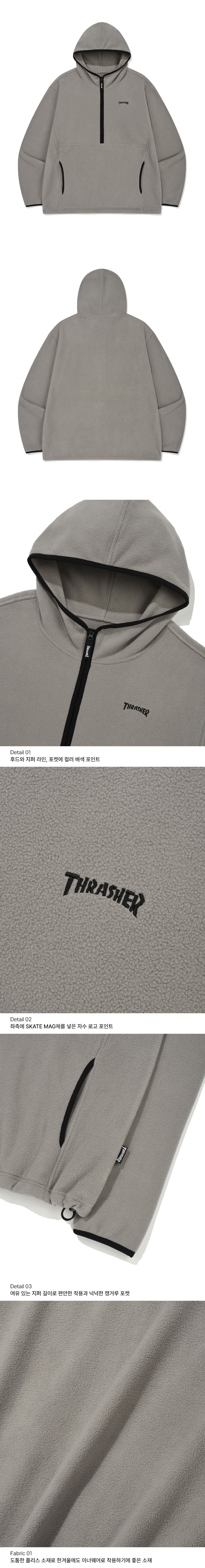 트레셔 매거진 플리스 하프집업 후디 그레이