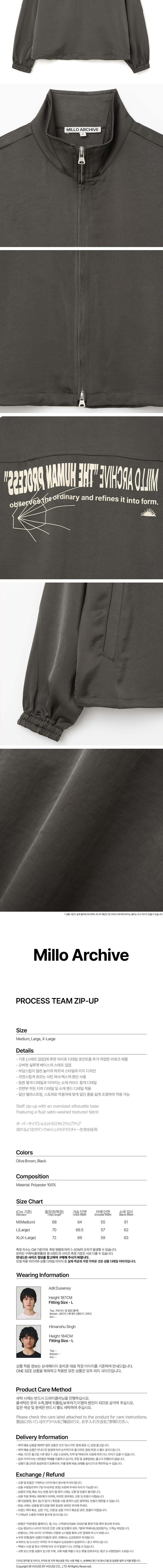 밀로 아카이브 프로세스 팀 집업 올리브 브라운