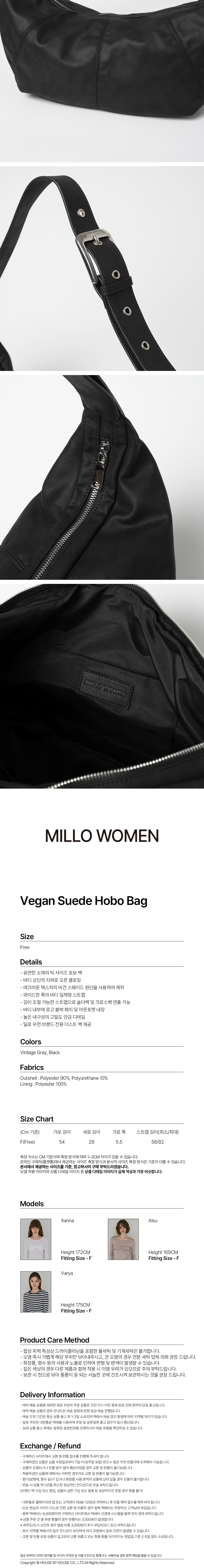 밀로 우먼 비건 스웨이드 호보백 블랙