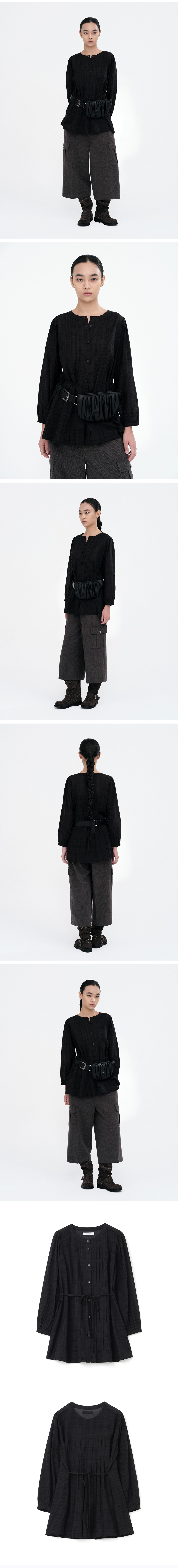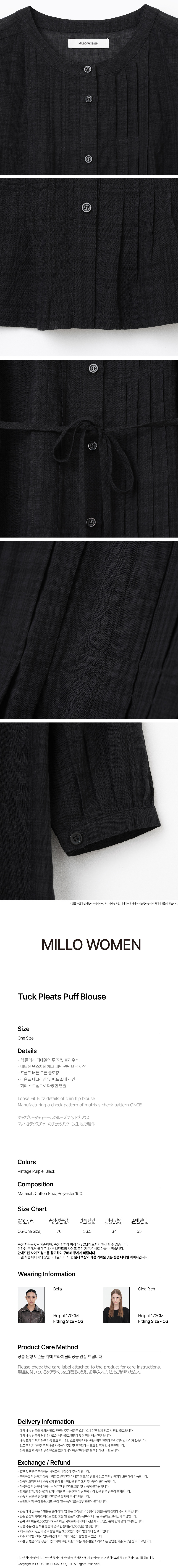 밀로 우먼 턱 플리츠 퍼프 블라우스 블랙