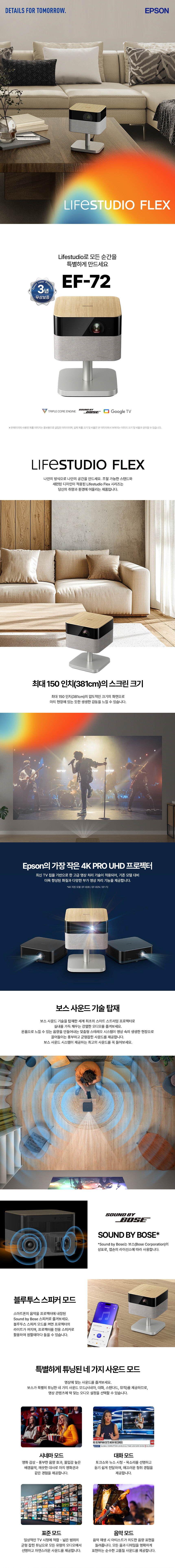 엡손 라이프스튜디오 FLEX Plus EF-72 미니 빔프로젝터 UHD 1000 ISO루멘 트리플코어엔진 BOSE 사운드