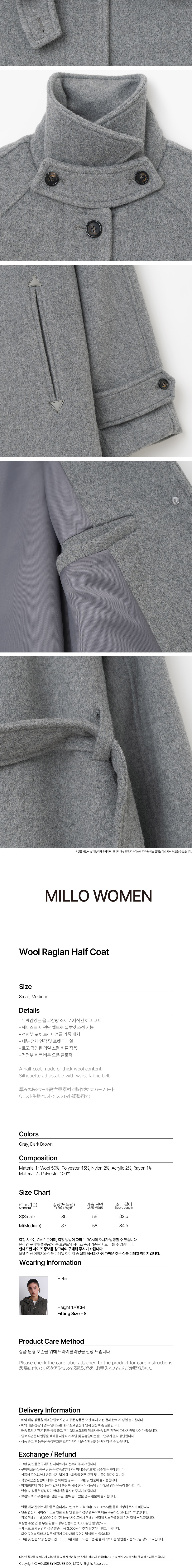 MILLO WOMEN Wool Raglan Half Coat Gray