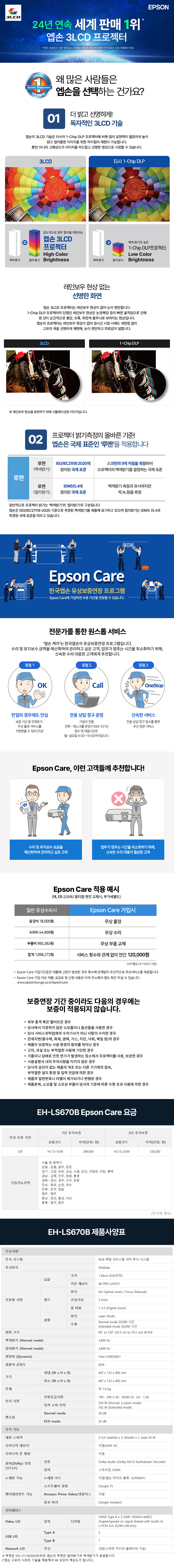 엡손 라이프스튜디오 GRAND EH-LS670B 프로젝터 4K 3600 ISO루멘 BOSE 구글TV