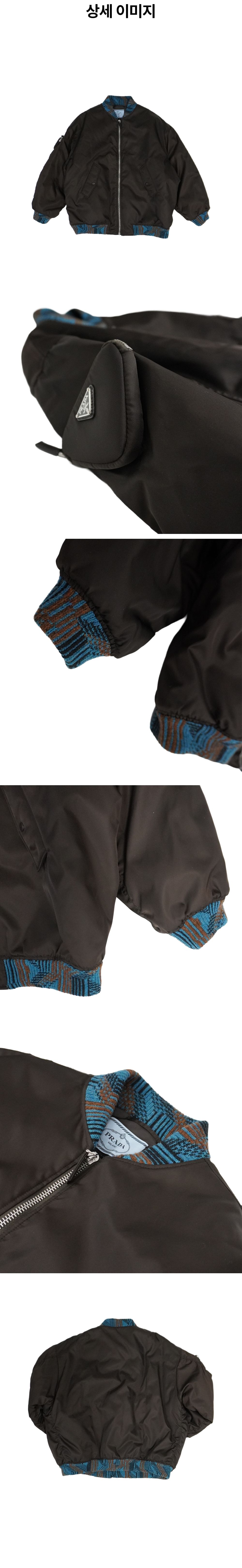 프라다 라프시몬스 리나일론 삼각로고 포켓 니트 봄버 자켓 브라운