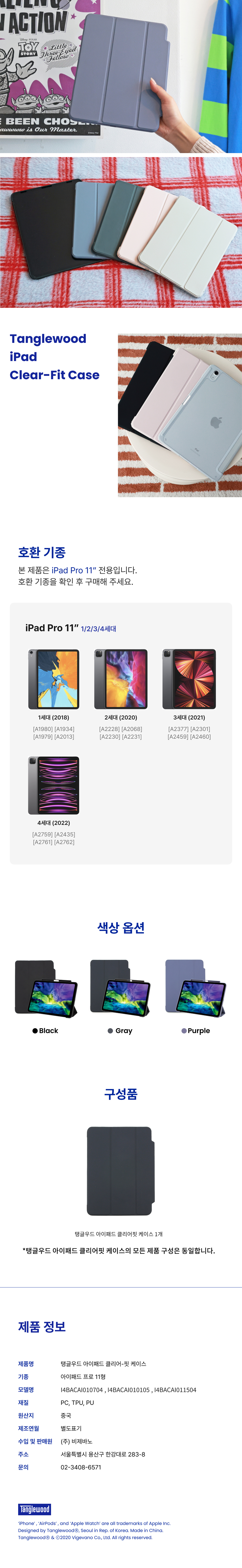 탱글우드 아이패드 프로 11인치(1/2/3/4세대) 클리어 핏 케이스 애플펜슬 수납 스마트커버