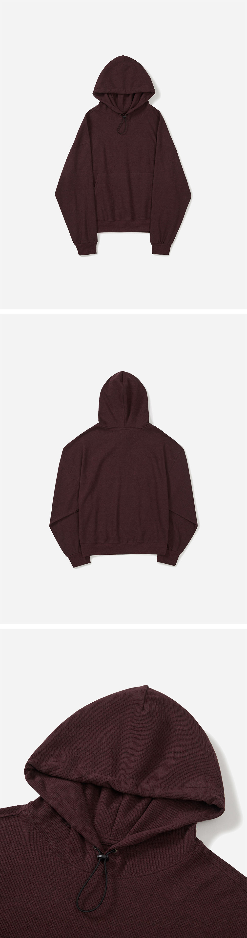 / Details. - 얇고 가벼운 와플 소재로 제작된 후드 티셔츠 - 러프한 원단감이 매력적인 아이템 - 유려하게 드레이프 되는 릴렉스 핏 실루엣 - 미니멀한 무드의 후드 프런트 아일렛과 스트링 스토퍼 어드저스터 디테일 - 브랜드 시그니처 라벨 포인트