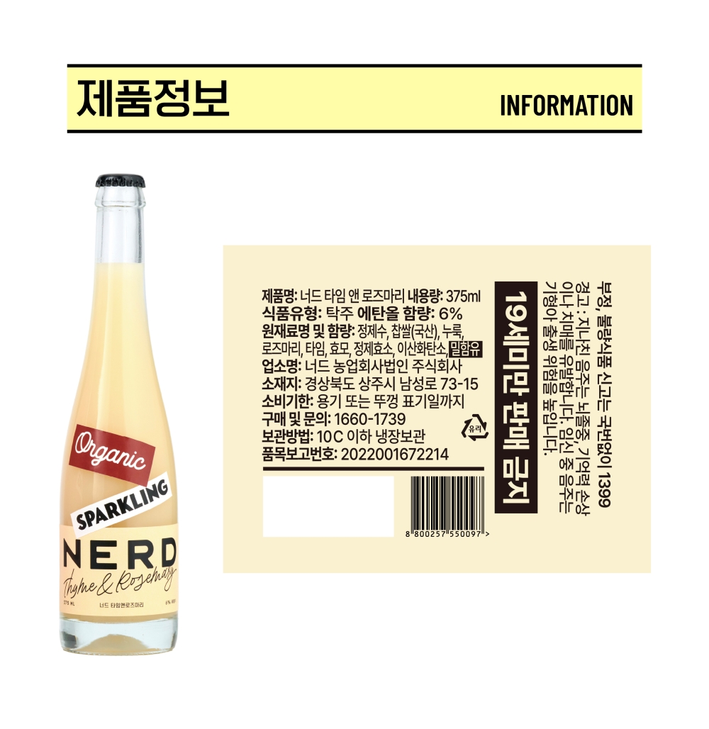너드 타임앤로즈마리 스파클링 1병 375ml 6도